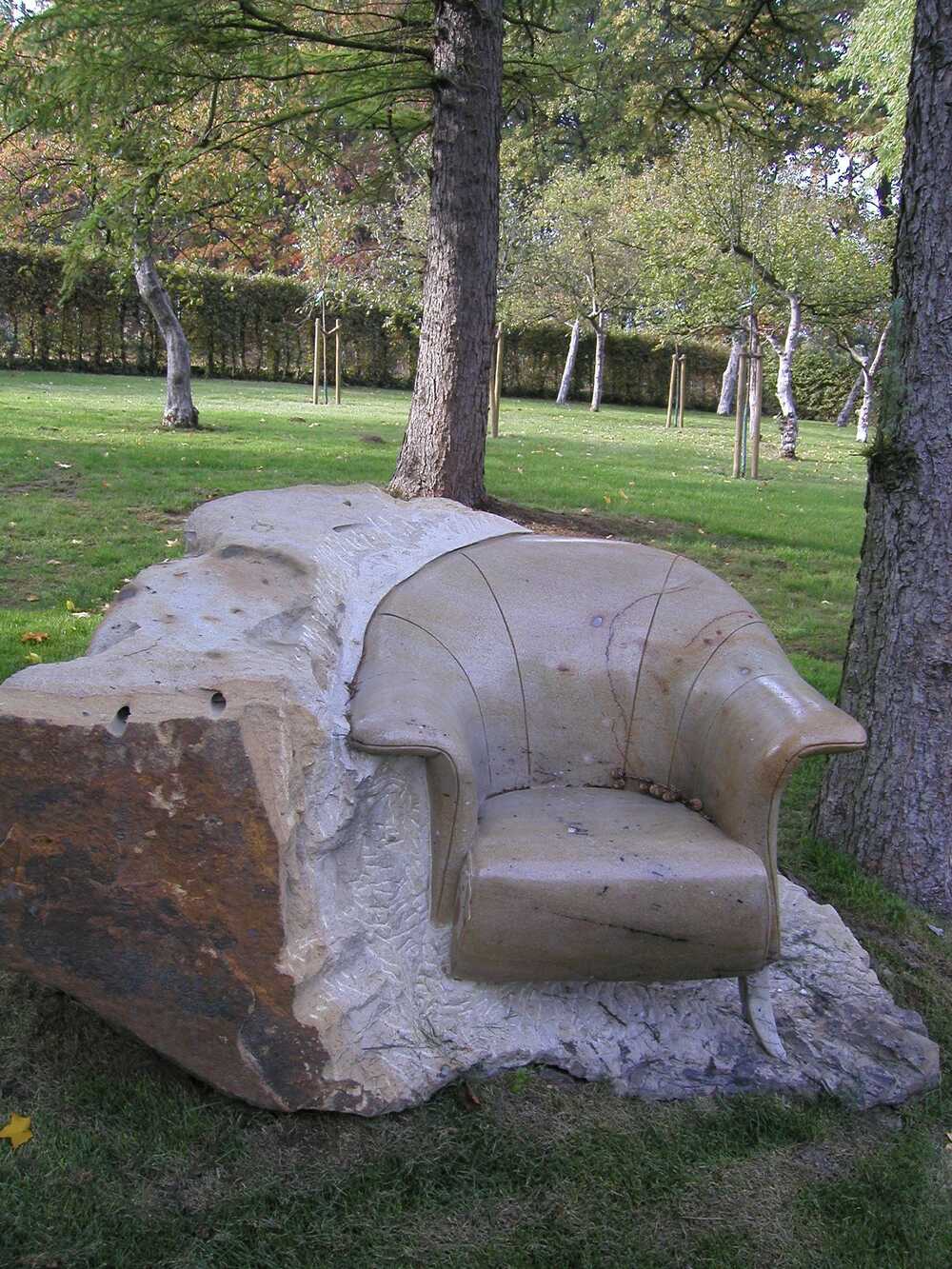 Originalgetreue Nachbildung eines Rolf Benz Sessels in Sandstein.