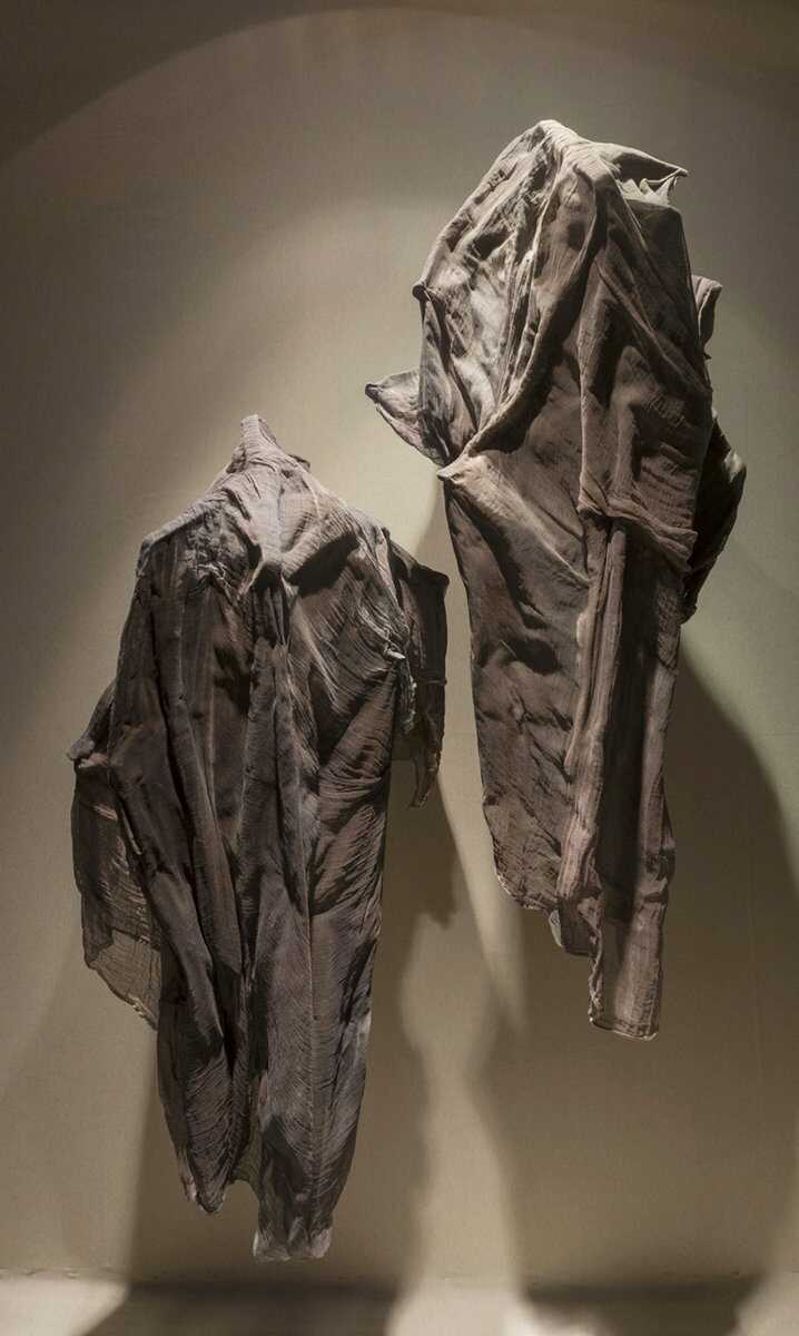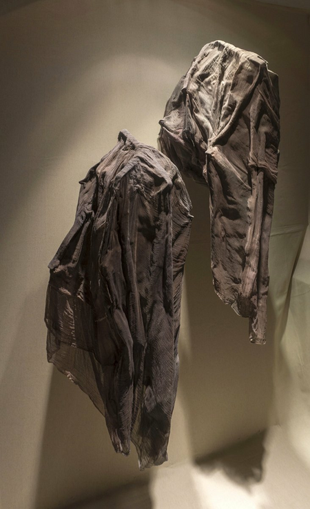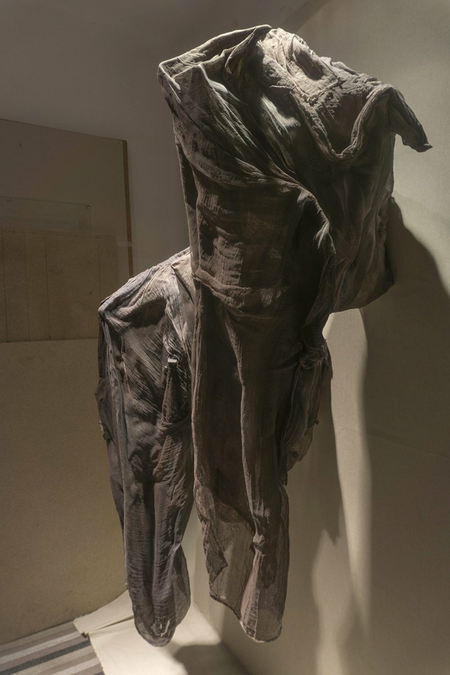 Wall-mounted work made from tarlatan gauze, light internal structure, color