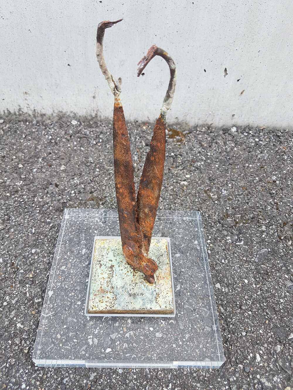 Bronze, patieniert, auf Stahl und Plexiglas