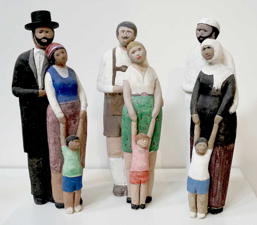 Drei gleiche Betongüsse habe ich so modifiziert, dass die 3 Familien, als tragendes Element der Menscheit, die drei Hauptreligionen aufzeigen. Hier wird die Wichtigkeit der Familie herausgestellt, egal was sie anhaben oder welcher Religion sie angehören.