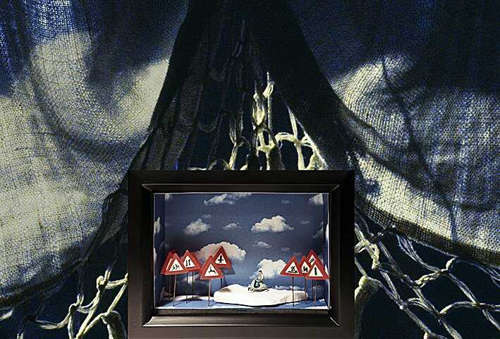 Auf einem Foto sitzt ein Objektrahmen mit einer Installation, die eine Geschichte erzählt. (Ausschnitt)