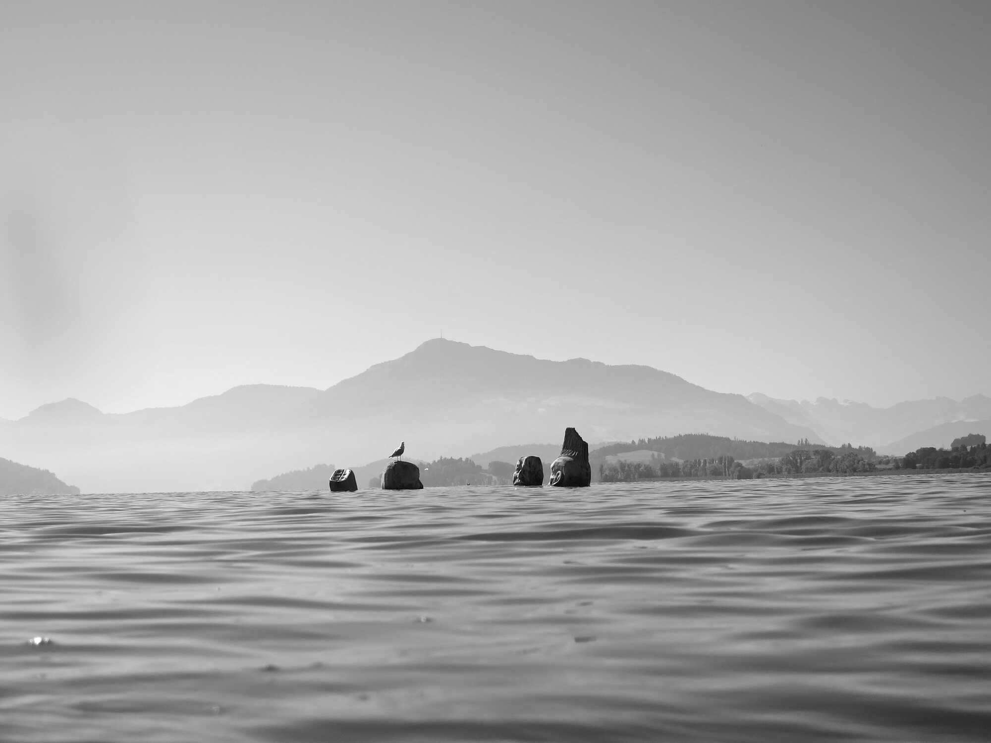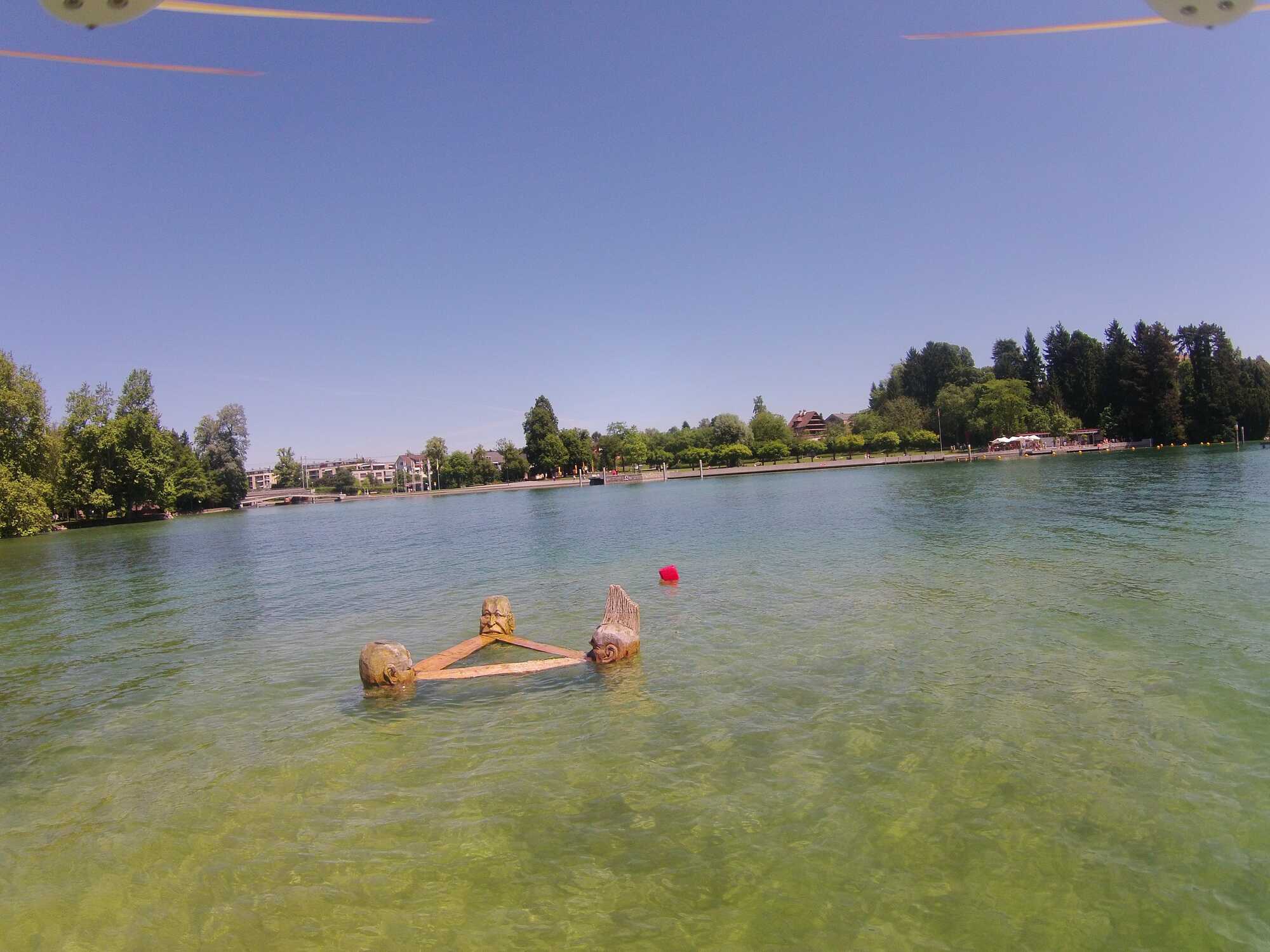 Im Sommer schwimmt sie in Cham am See. So wurde sie Dreh und Angelpunkt bei der Untiefe. Eine Skulptur welche Menschen miteinander ins Gespräch kommen lässt und eine Begegnungszone im Wasser schafft.