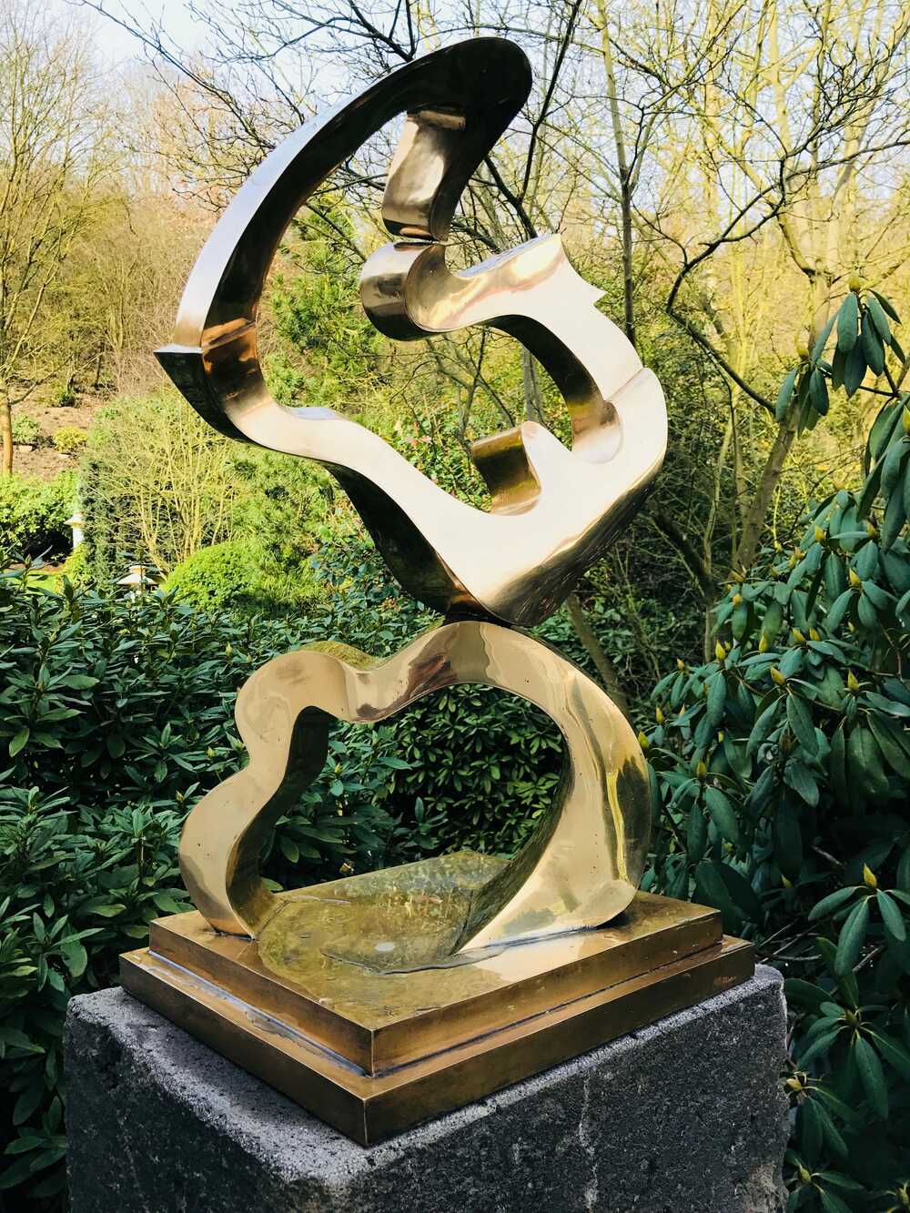 Skulptur: Polierte Bronze auf antikem Basaltsteinsockel