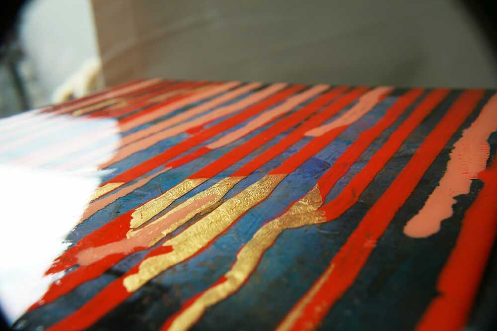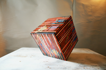 Close up . CUBE aus MDF, bemalt und bedruckt, teilweise vergoldet. Veredelt mit 2K Kunstharzlack. Steht auf Ecke oder kann in einen Rahmen für die Wand montiert werden.