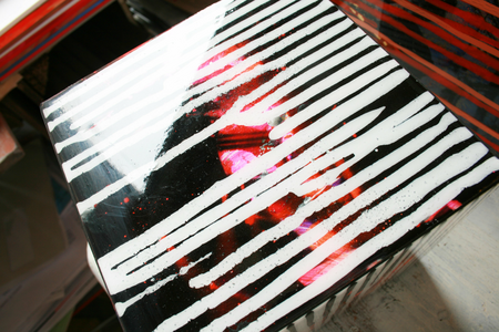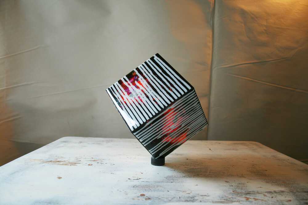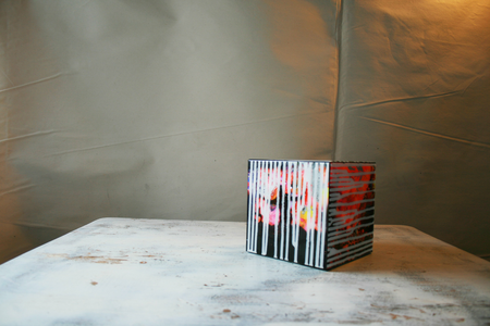 CUBE aus MDF, bemalt und bedruckt, teilweise vergoldet. Veredelt mit 2K Kunstharzlack. Steht auf Ecke oder kann in einen Rahmen für die Wand montiert werden.