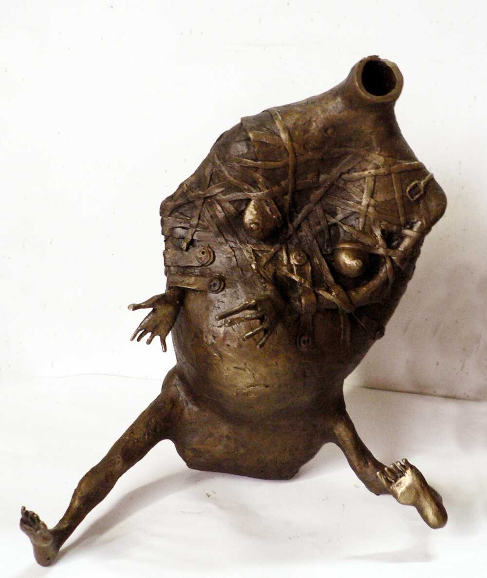 Starting from the human dimension, each character – which may become an exemplary model to be meditated upon – makes reference to fundamental life experiences in a place (universe) dominated by the everlasting omnipresence of frustration, whose existence in time is intended to be anticipated. Therefore, these works are materialized in the visual plan of the imbalance between inner- and outer-self.