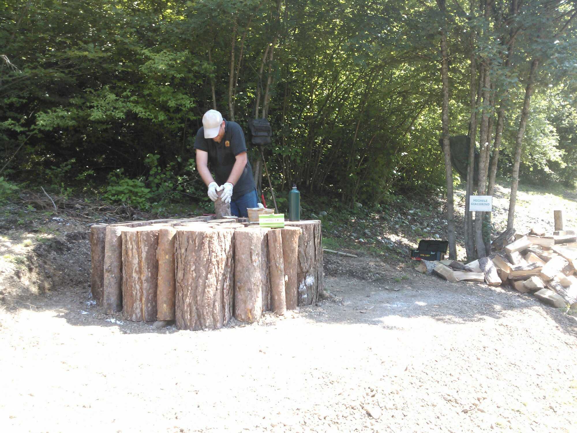 An installation for "BAS - BOSCO ARTE STENICO", a land art international annual festival in Italy. Reflection concerns water as a vital element. Growth rings of a tree represent a lifetime and before their growth has been cut off it has been influenced by the amount of rain fallen in the woods. They tell, in some ways, rain stories (rain poetry in the woods) and they themselves refer to concentric waves on the water's hair. We have to consider the vital importance of trees in the life cycle of the element necessary to life. The WATER well is also an ancient and emblematic element of survival, in this case with a decontextualized reference: instead of being the essence of an inhabited center is placed in the middle of a forest, realizing a double referring to a fairy tale: the forest and the well are both united by mystery and desire, attraction and repulsion. http://www.boscoartestenico.eu