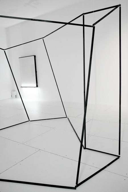 This Installation was part of the soloshow „pure simulation“ at Galerie Bridget Stern, Hamburg Germany // 2018. It shows a constantly changing room in its borders, dimensions and appereance.