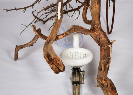 Seeds are shown in two different ways. On the scale they are shown as a value in weight. On the branch they're shown (as they are) as a gift from nature. Over time there representation can change. Balance in a physical way and in nature's way.
