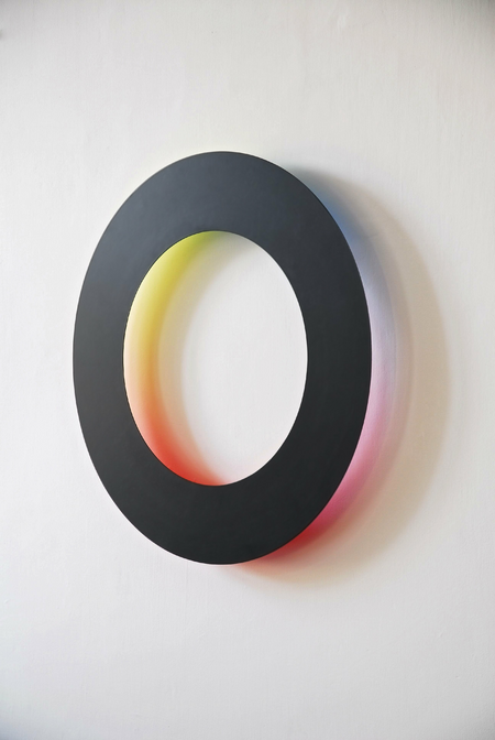 Der Immaterialität des Lichts und seiner färbigen Lichtbrechungen kommt der sehr dünne, beinahe nicht greifbare Kreis entgegen, dessen Kanten schräg abgefast sind, um ihn verschwindend dünn und als Körper kaum wahrnehmbar zu machen.