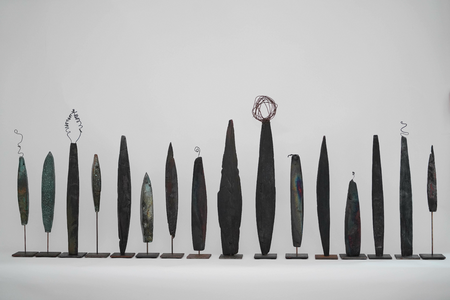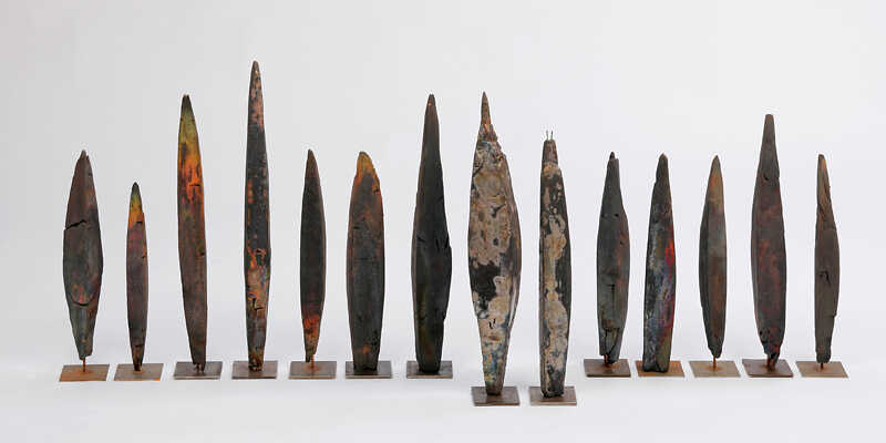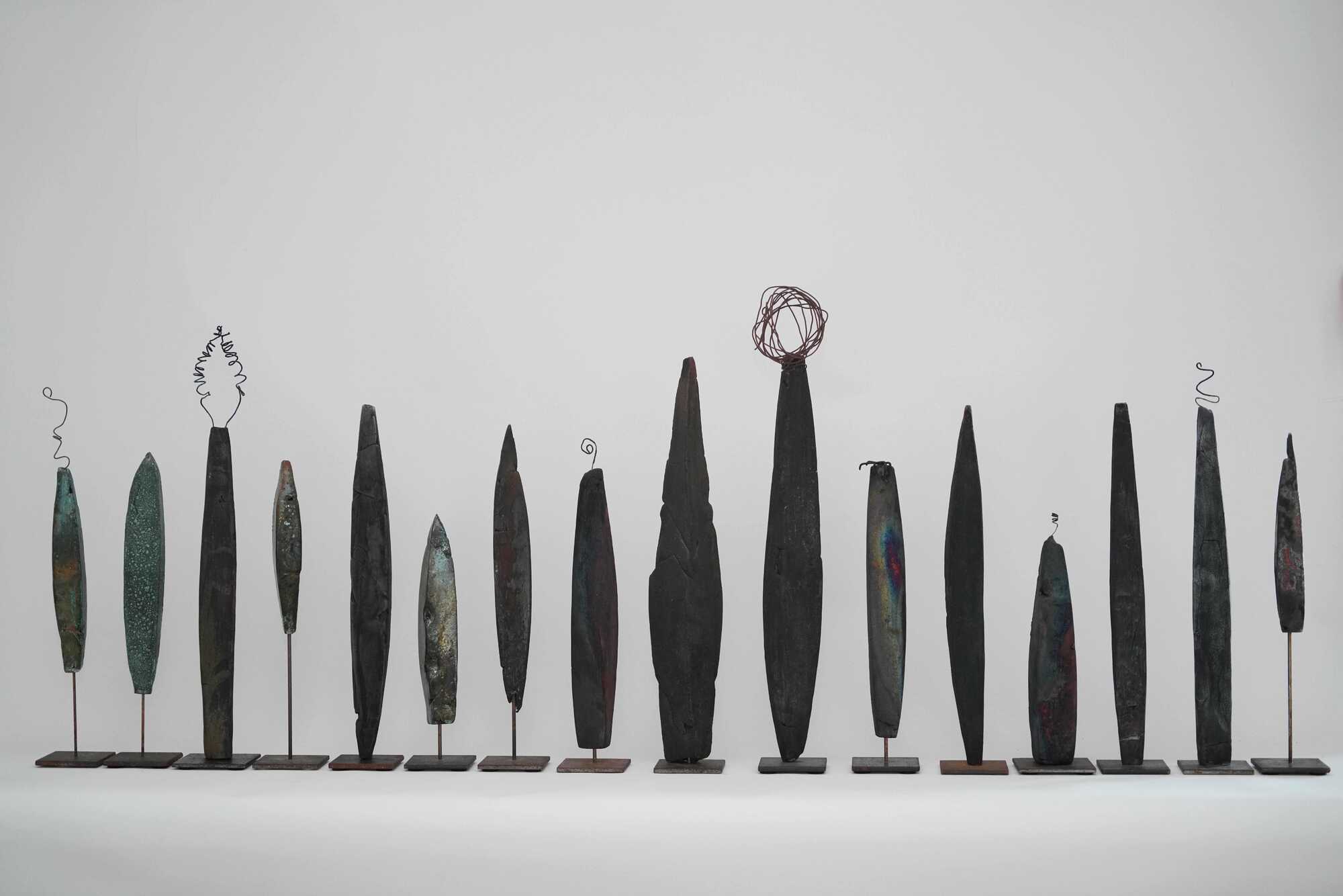 Ton, Rakubrand, teilweise Draht, Metallständer