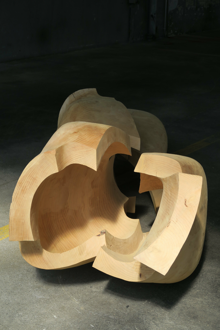 Prometheus ist der bekannte Titan aus der griechischen Mythologie, aktiver Macher und Feuerbringer der Menschheit. Er trägt den Namen «der Vorausdenkende»; für seine berühmte Tat wurde er allerdings von den Göttern fürchterlich bestraft. Sein Bruder Epimetheus ist praktisch unbekannt. Als ewiger Zweifler, «der danach Denkende», hat er einen schlechten Ruf und litt sicher sein Leben lang unter dieser «Charakterschwäche». In der liegenden Holzskulptur loten die beiden Brüder als polares Paar das Mögliche und Machbare aus.