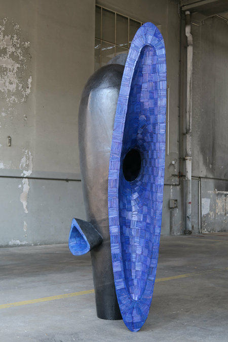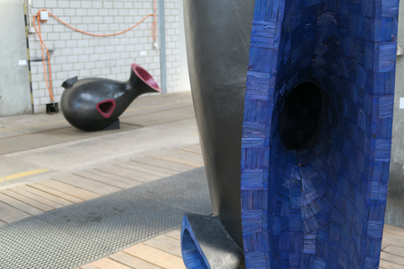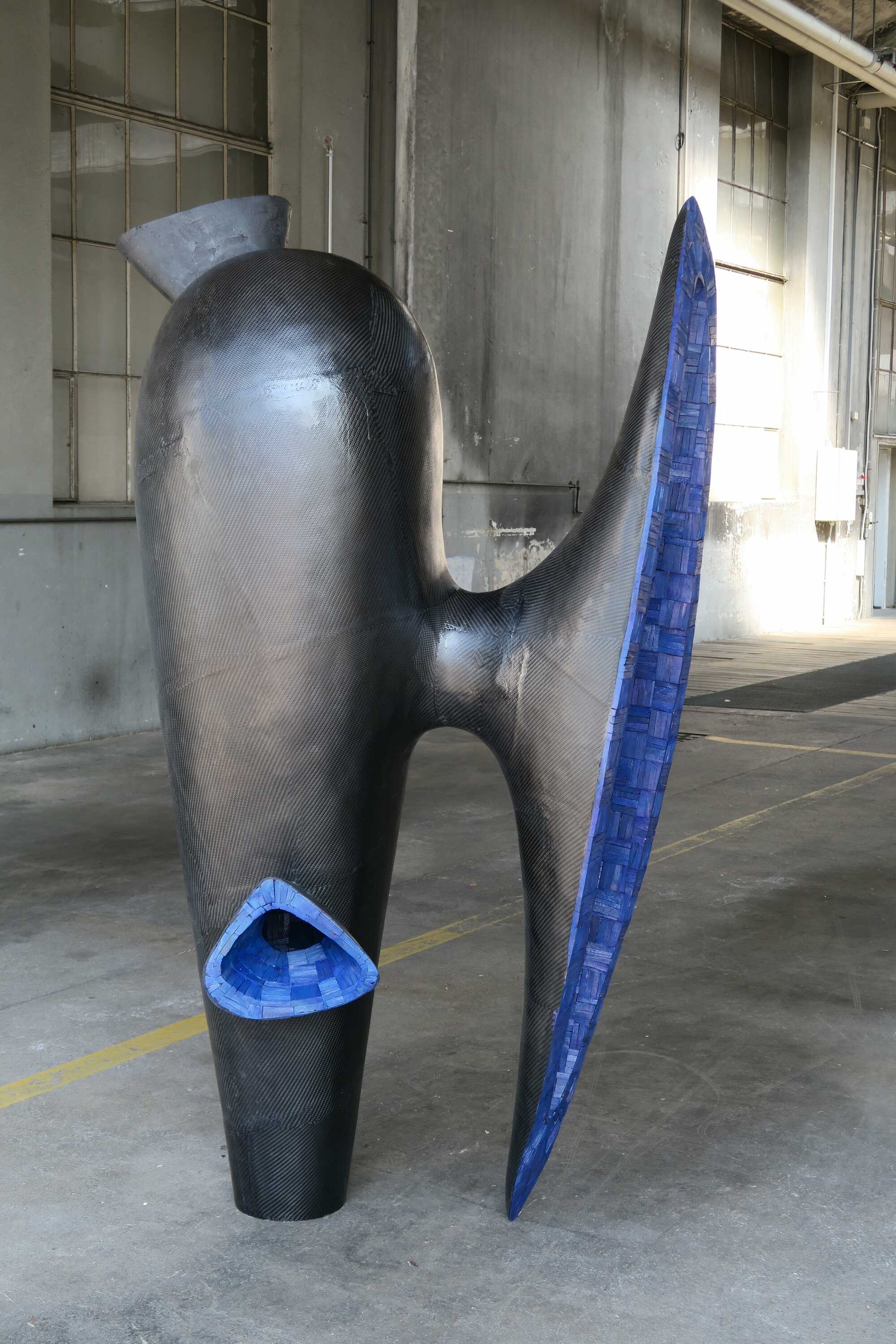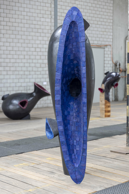 Frog King’s height exceeds a normal adult by far. Standing opposite the sculpture the visitor is confronted with its tremendous absorbing mouth. The blue colour supports the feeling of absorption. Behind the mouth the spacious mystical cavity opens and holds an opportunity to nestle in separated from the world’s hustle and bustle, to calm down protected by thick black walls, tranquillity, to concentrated on the essential – and maybe hatching of this incubator as an altered human being. The moment of apparently uncontrolled violence in the fairy tale of the same title is replaced in this work by self-determined and deliberate potential for change.