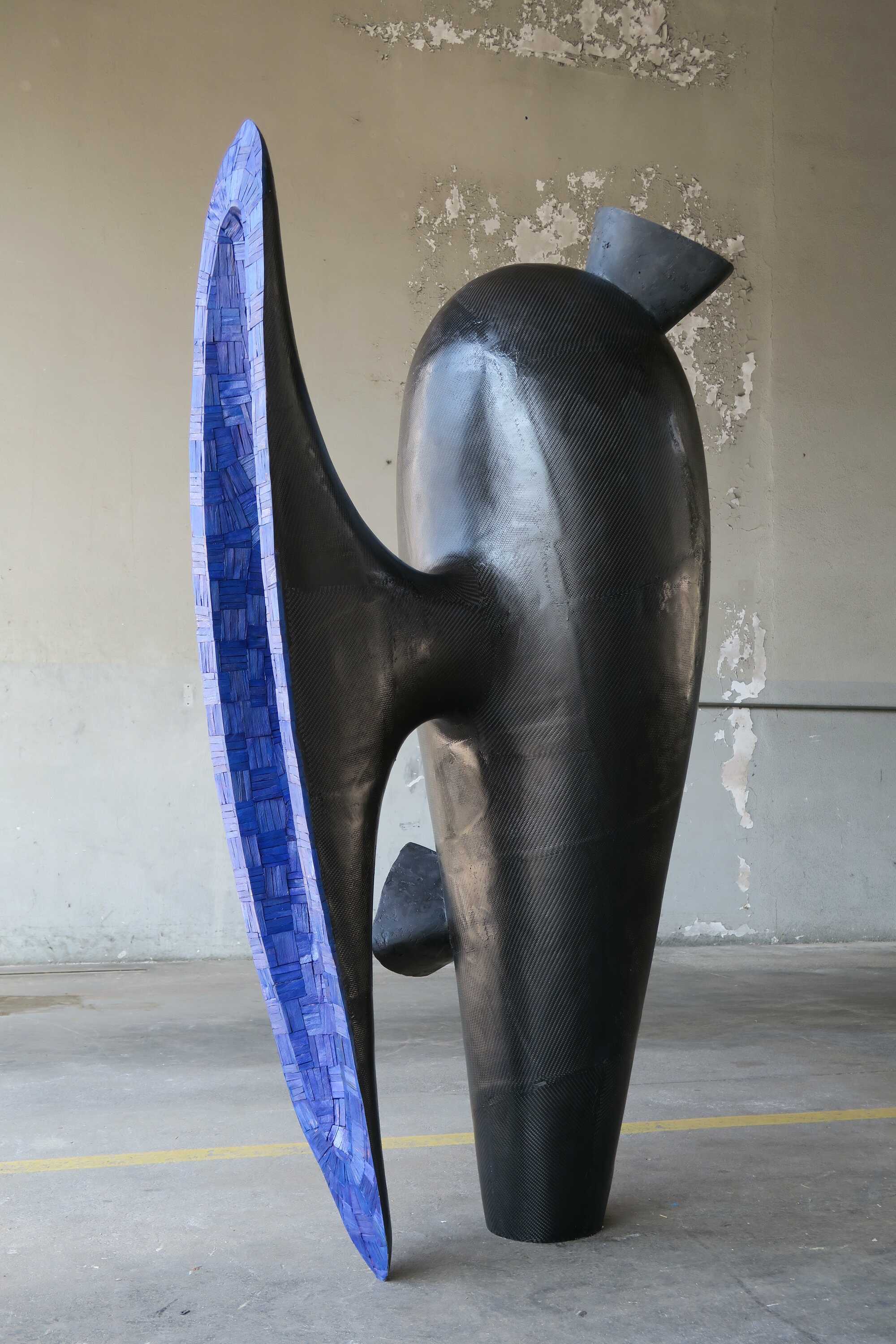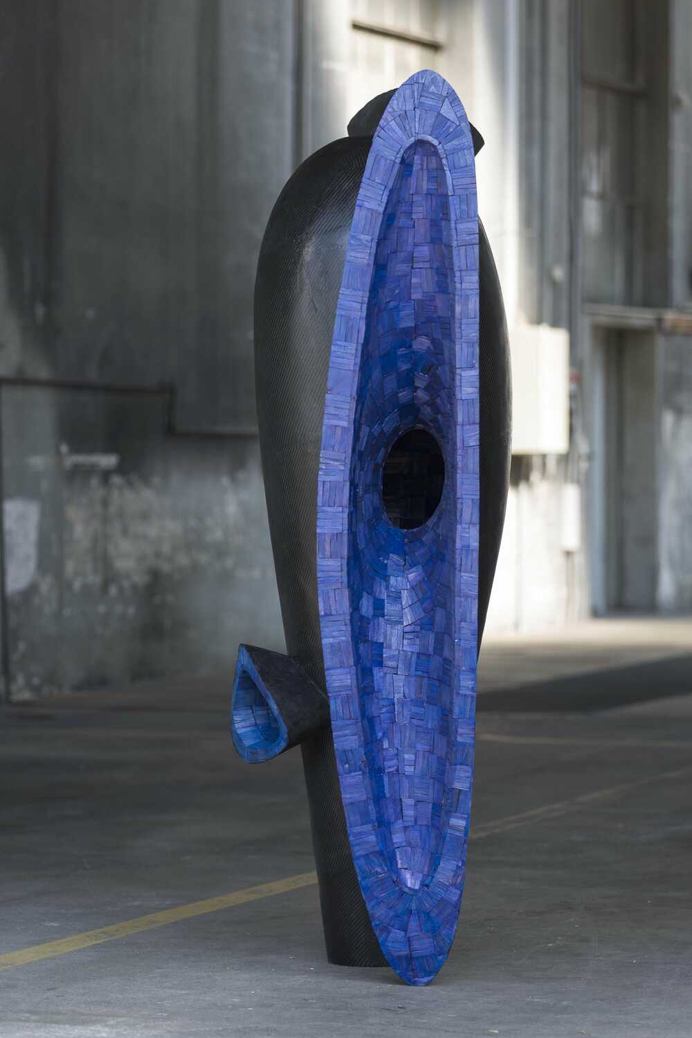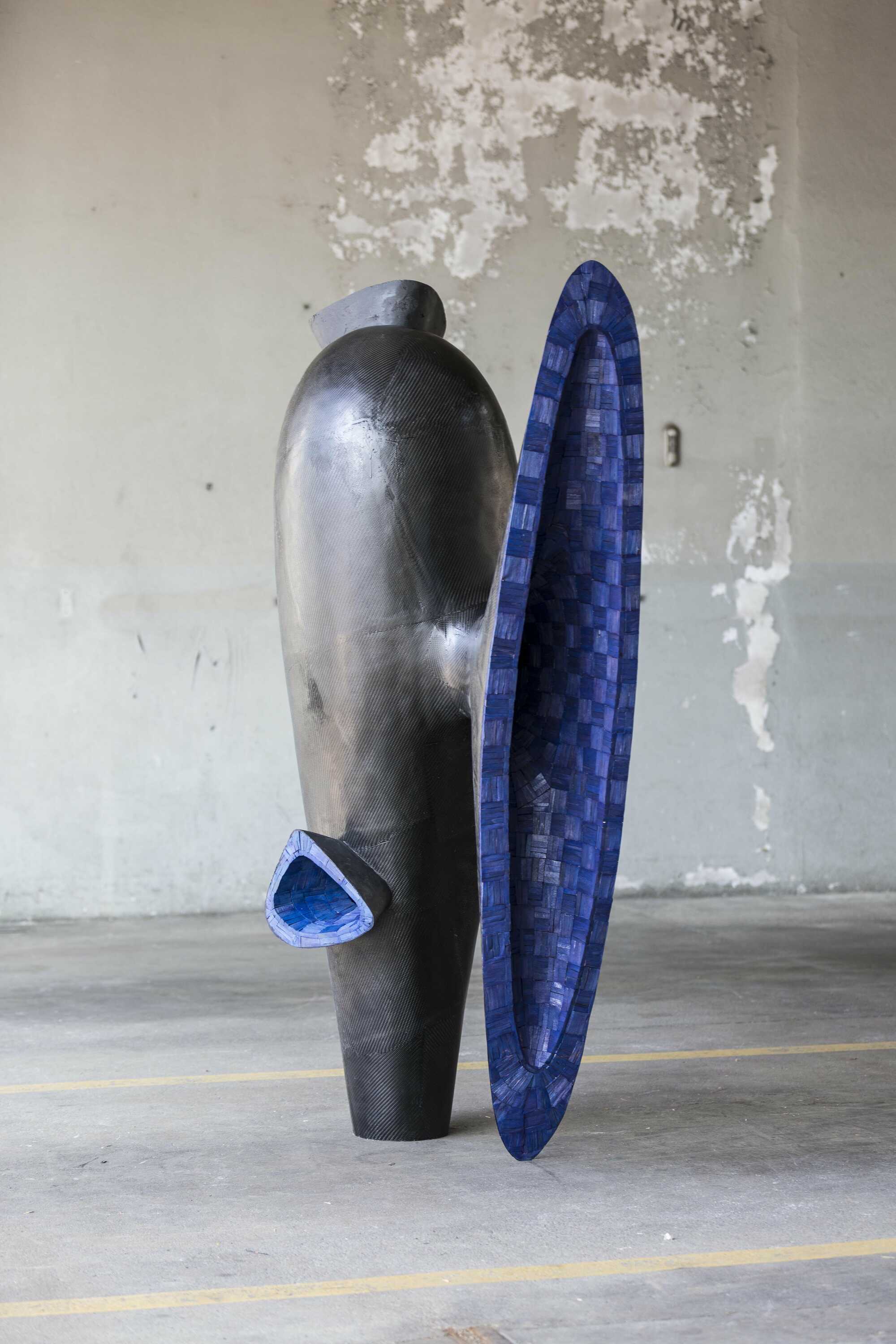 beechwood (bit-technique), ultramarine blue translucent varnish; epoxy resin; carbon fibre laminate