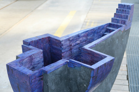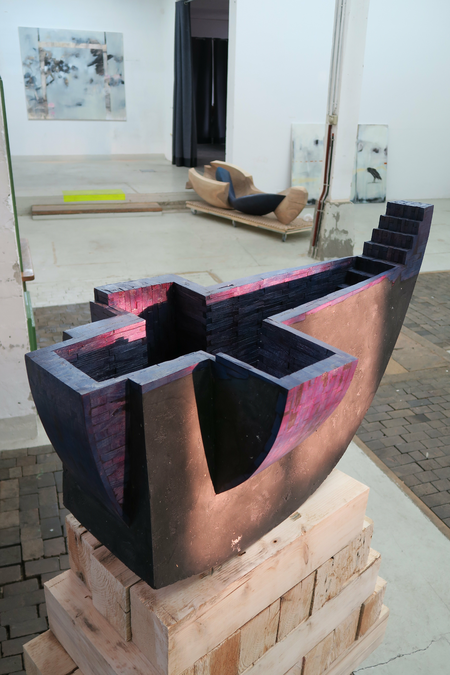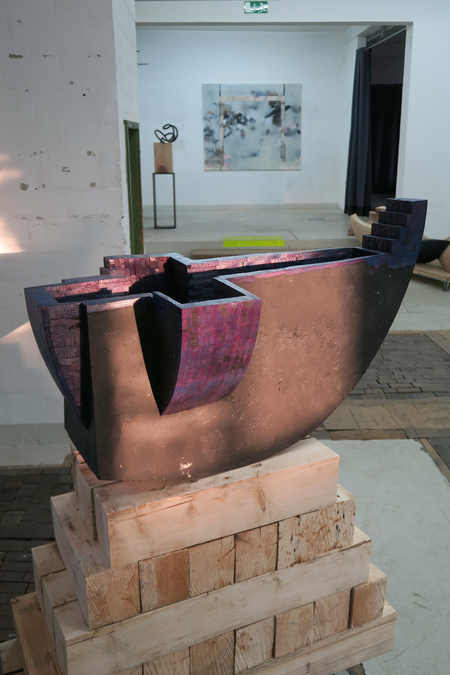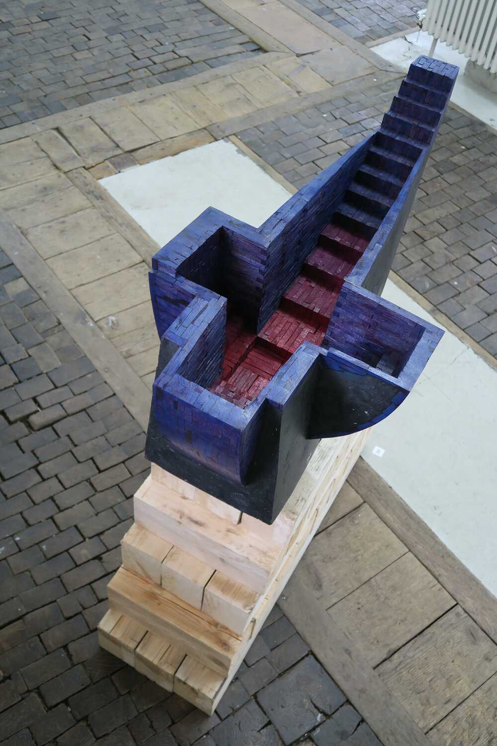 beechwood (bit-technique), bluish and reddish purple translucent varnish; epoxy resin