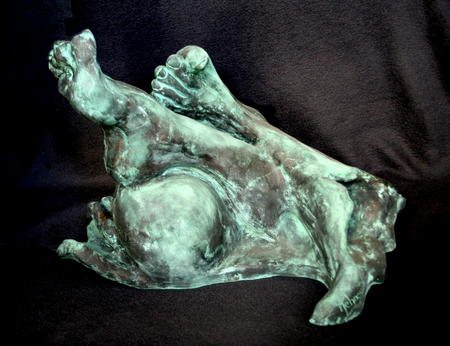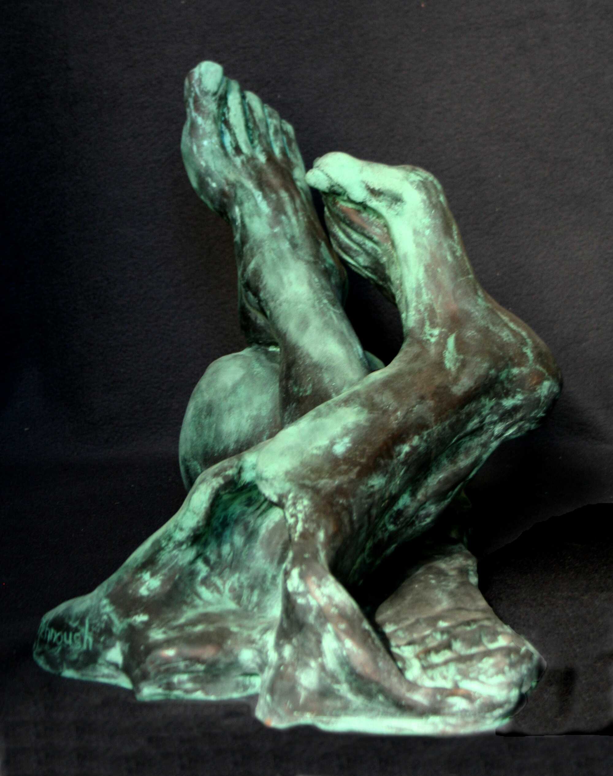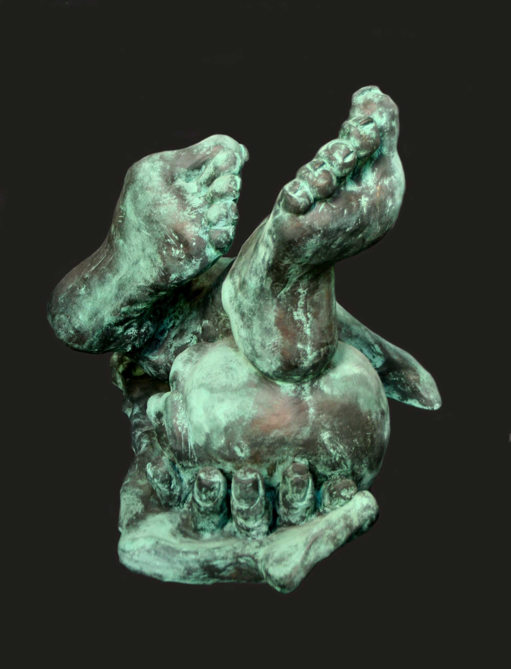 In this sculpture, I portrayed an individual that is under that pressure (feet on top of a head) but he/she is trying to survive (head is half buried). In these periods one needs to make more effort, have extra support or have faith (the hand supporting the head) to overcome the situation because of one’s survival instinct. This shows the battles one faces in day-to-day life.