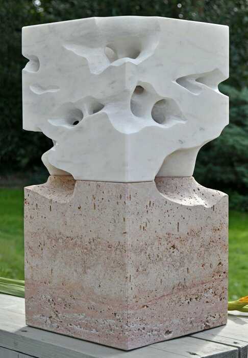 Section of the earth and sky. The clouds taken out. The negative shape is the sculpture. The thin air is marble.