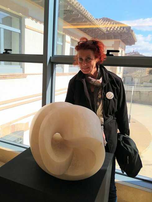 A double moebius, carved out of Alabaster during the XI symposium in Albalate del Arzobispo, ES, 2017