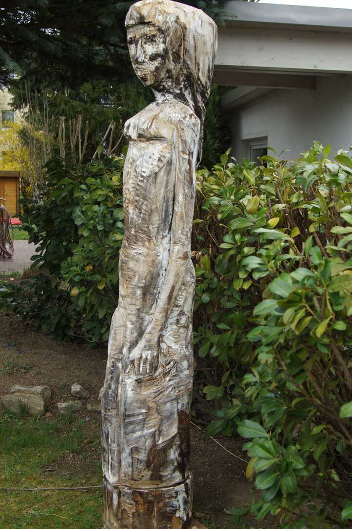 Eiche. Motorsäge. Geflammt und gekalkt.