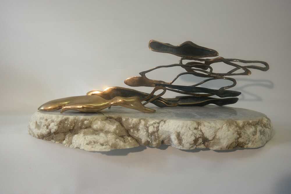 Partially polished bronze, alabaster