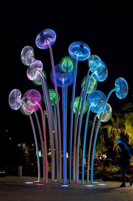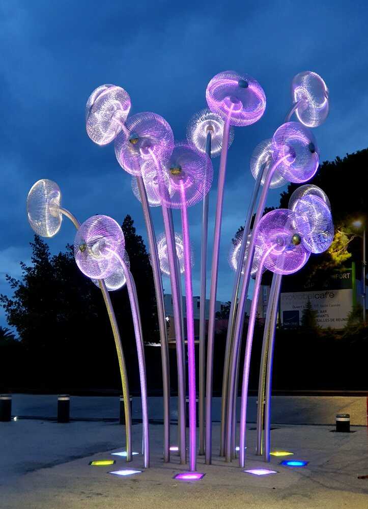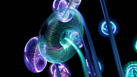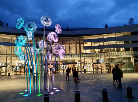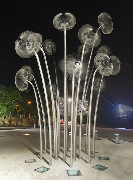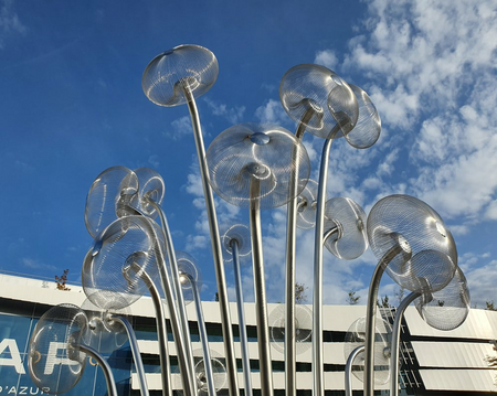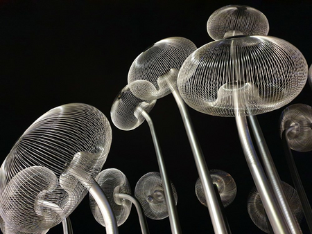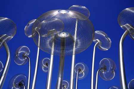 "Bubble Forest" was created as a reflection on the ability of plants to produce oxygen. The title forest consists of 18 steel stems/trunks ending with inflorescences/crowns in the form of spherical constructions representing a single air bubble. “Bubble Forest” refers to the terrestrial flora as well as to that known from the bottom of lakes, seas and oceans.