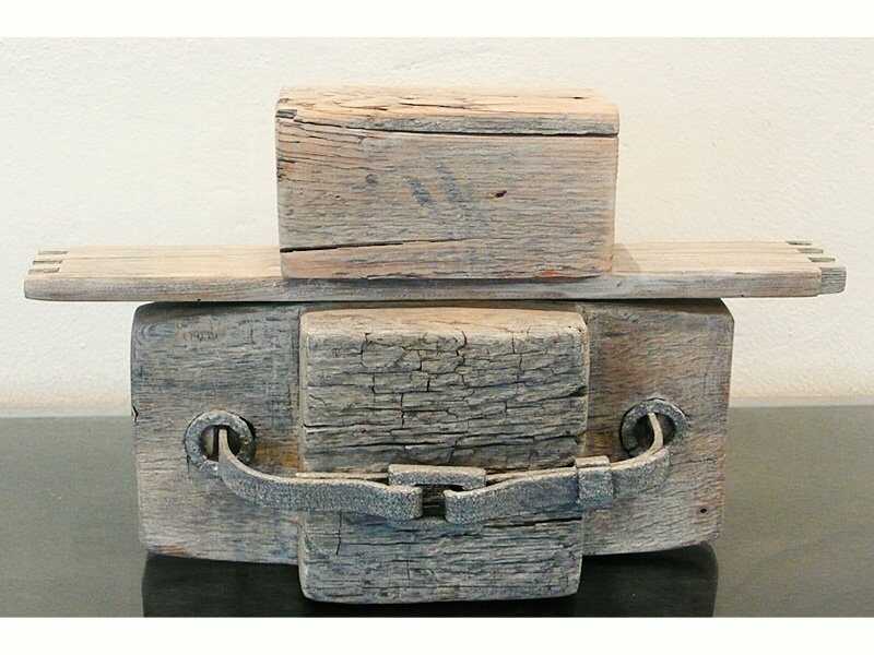 Kleinplastik (Objekt) aus Holz und Eisen.
