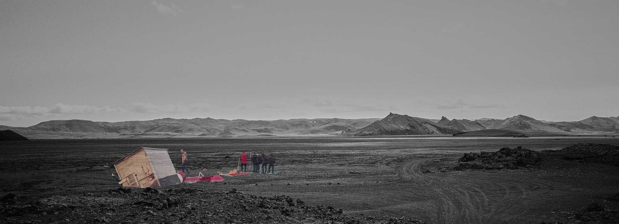 As the art historian Aldís Arnardóttir describes: “The forces of nature are unpredictable and nowhere are the opposites as great as in this barren wasteland. Where the white glacier's edge has retreated and wide areas of black sand and wasteland appear.