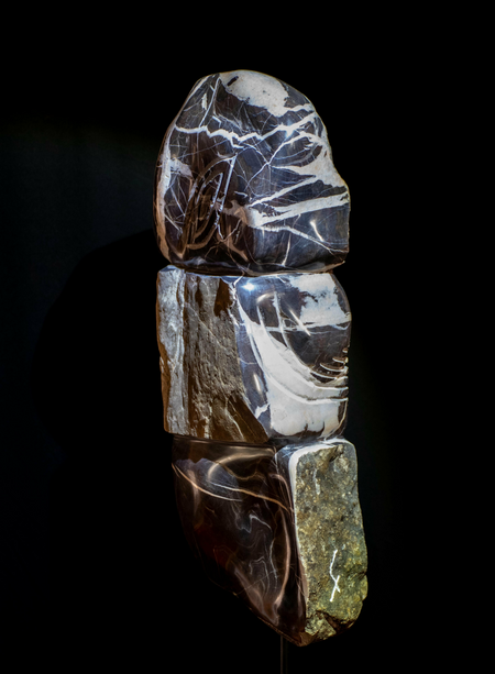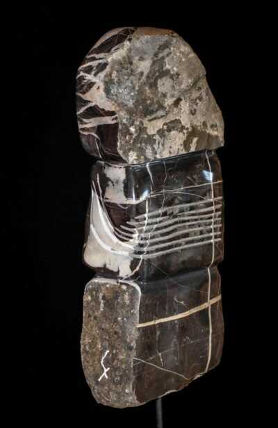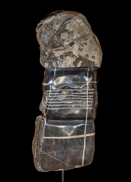 In einem Vorarlberger Bachbett habe ich diesen Kalkstein gefunden und bearbeitet. Jede Seite hat einen rohen Teil und einen glatten, bearbeiteten und mit Kerben versehenen Teil --- so wie ein "richtiger Vorarlberger" (ghöriga Xiberger) eben ist!