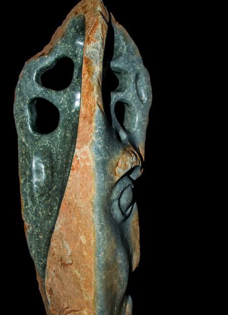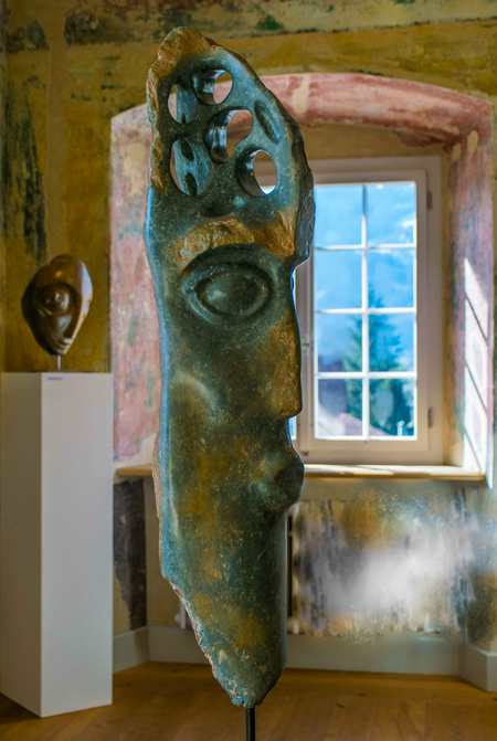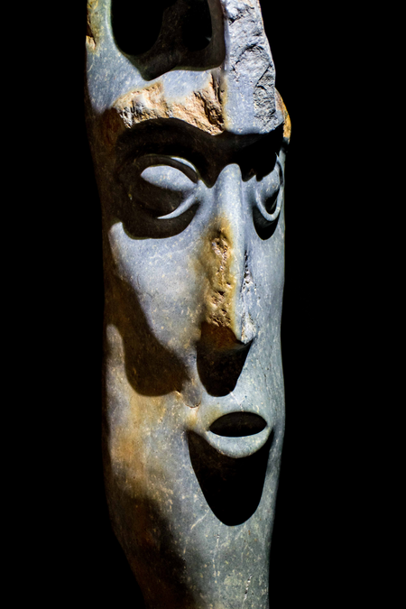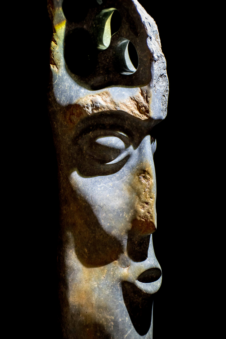 Aus einem länglichen Serpentin-Block herausgearbeitet. Mit offenen Augen, offenem Mund - und im Gehirn brodelt es Fantasien!
