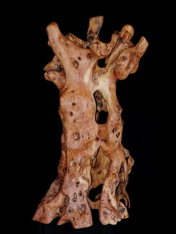 Ein sehr alter, knorriger Olivenbaum dem ich gar nicht viel Form geben musste - trotzdem mit sehr viel Kleinarbeit von den verfaulten, schlecht zugänglichen Stellen befreit. Der Baum und das Holz spricht für sich. Die Natur ist die Kunst und das Kunstwerk - von mir nur befreit! Mit Bildhauer-Eisen bearbeitet, geraspelt, geschliffen, gewachst, poliert,