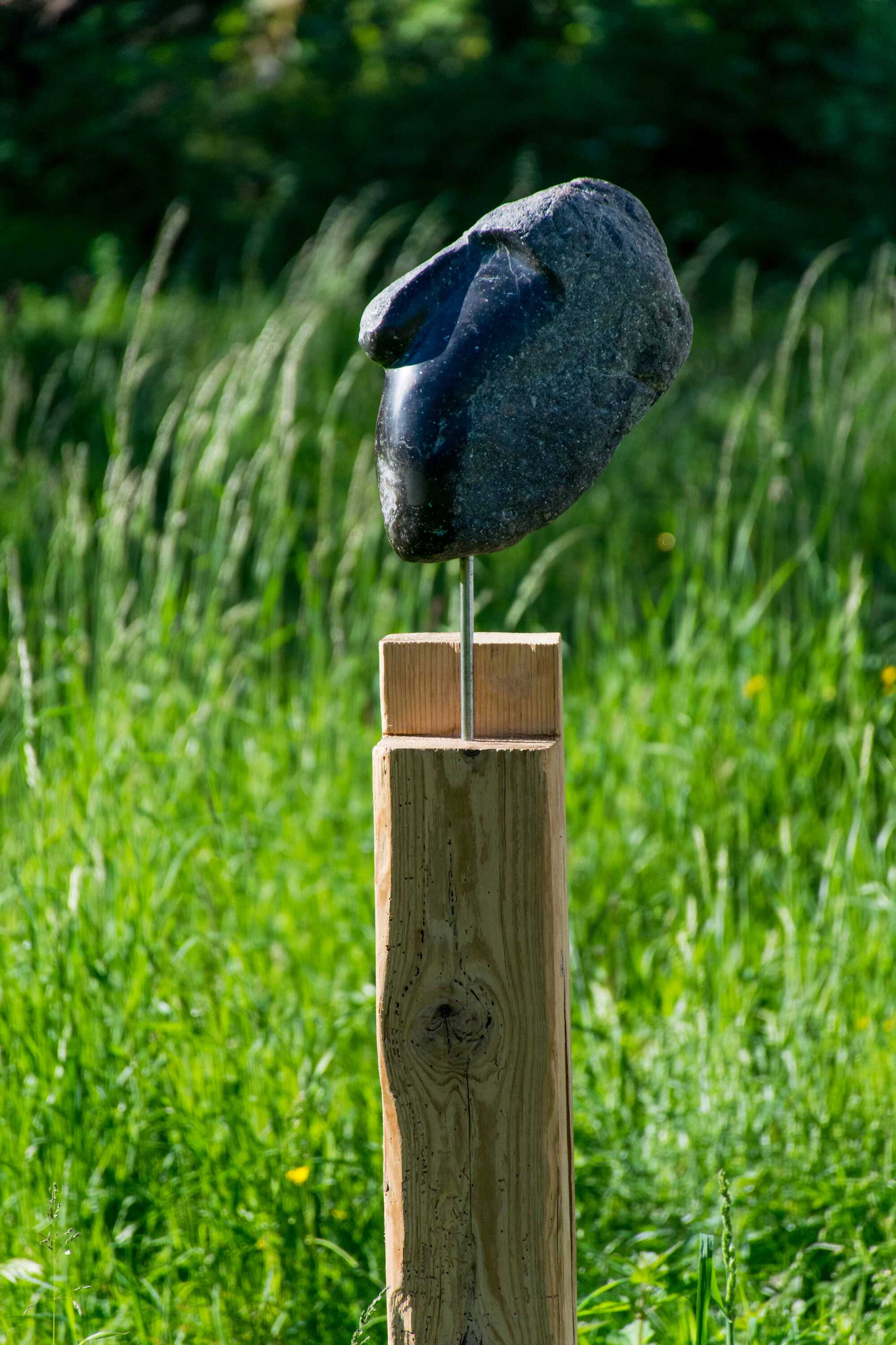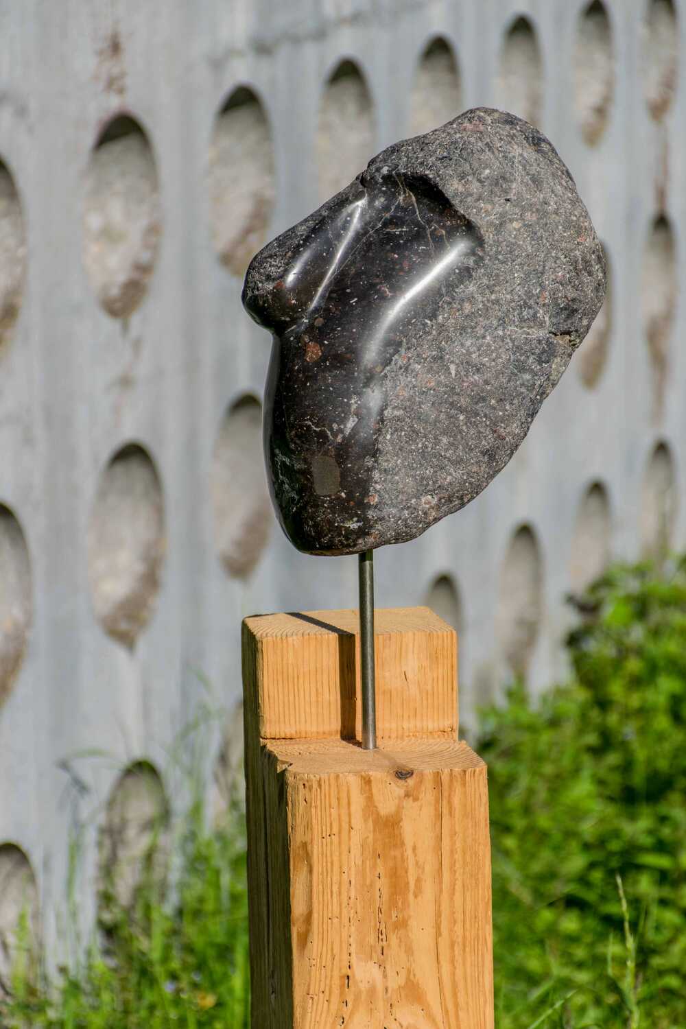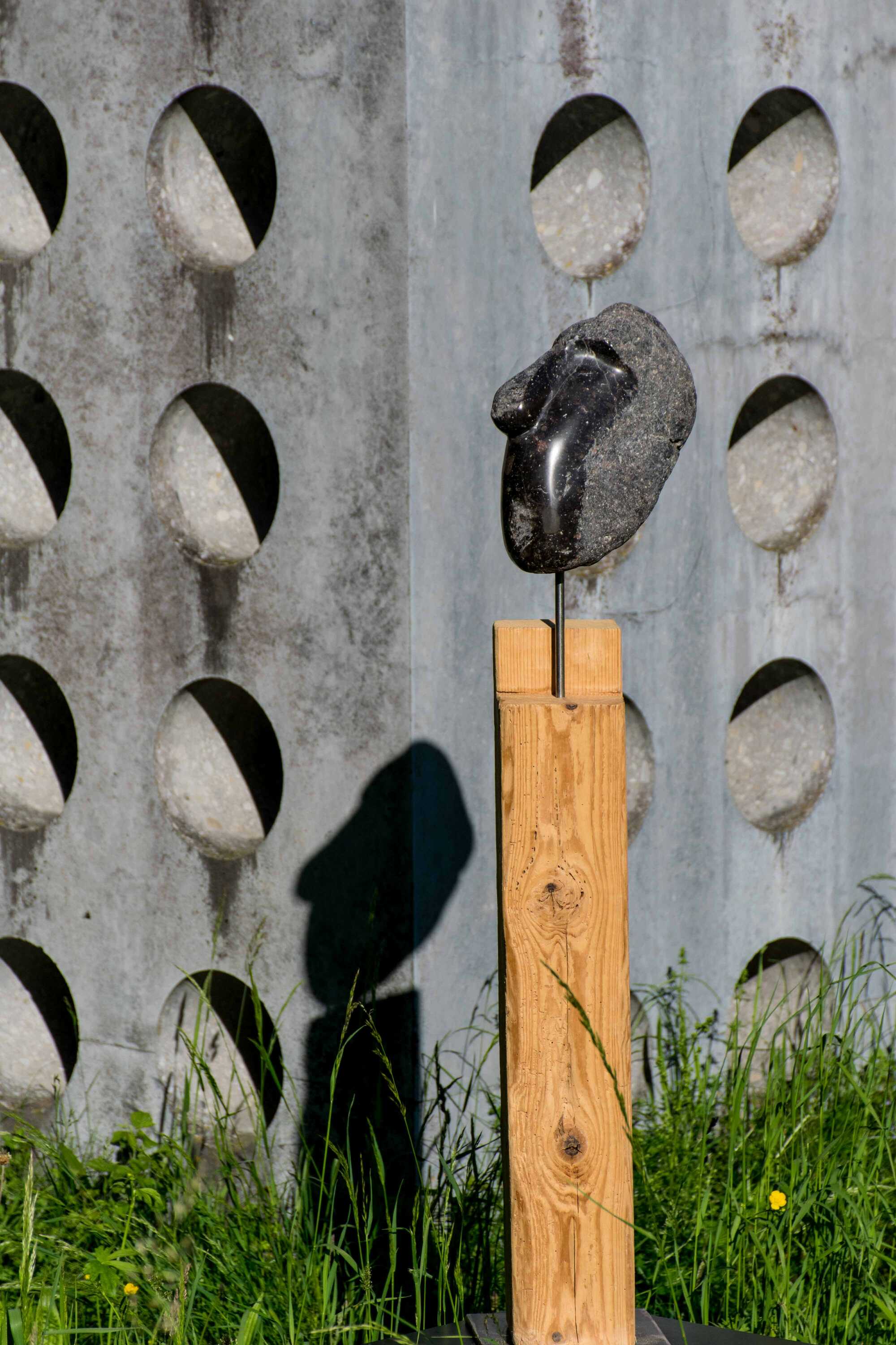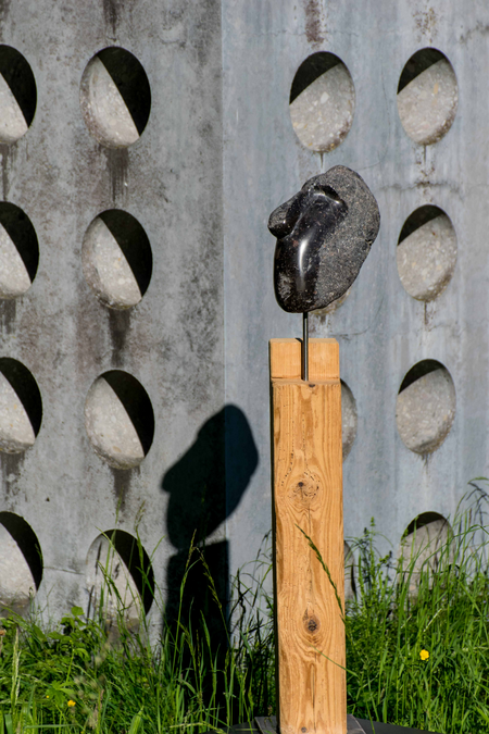 Mit einem 150 Jahre altem Holzbalken kommt der Kopf (übrigens vor dem Wasserhaus in Götzis - vom Künstler Fridolin Welte - in Scene gesetzt) gut zur Geltung!