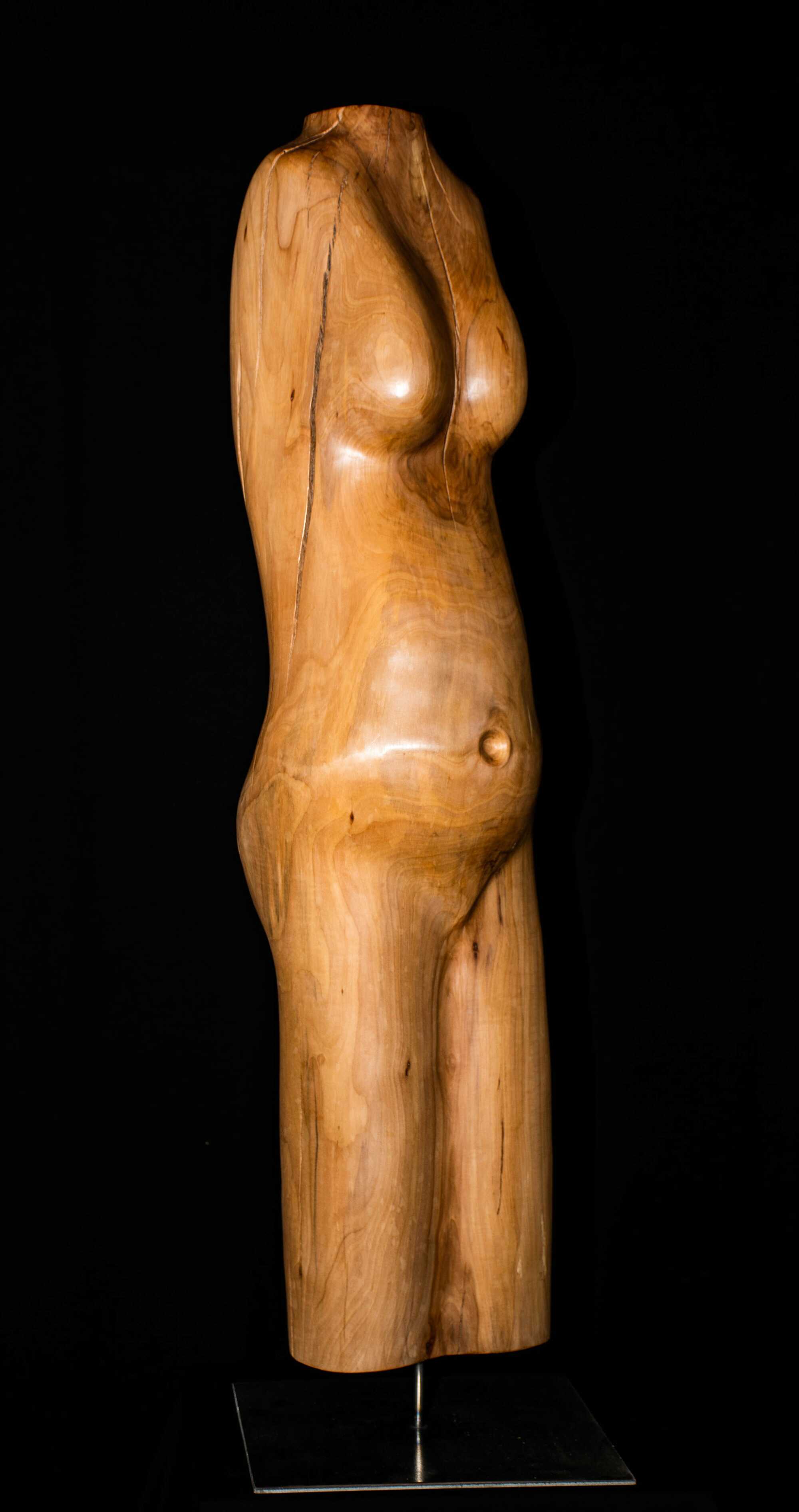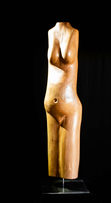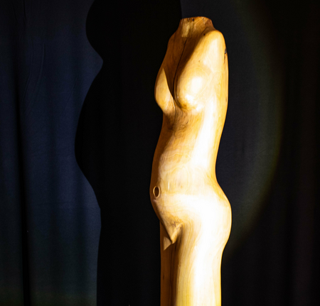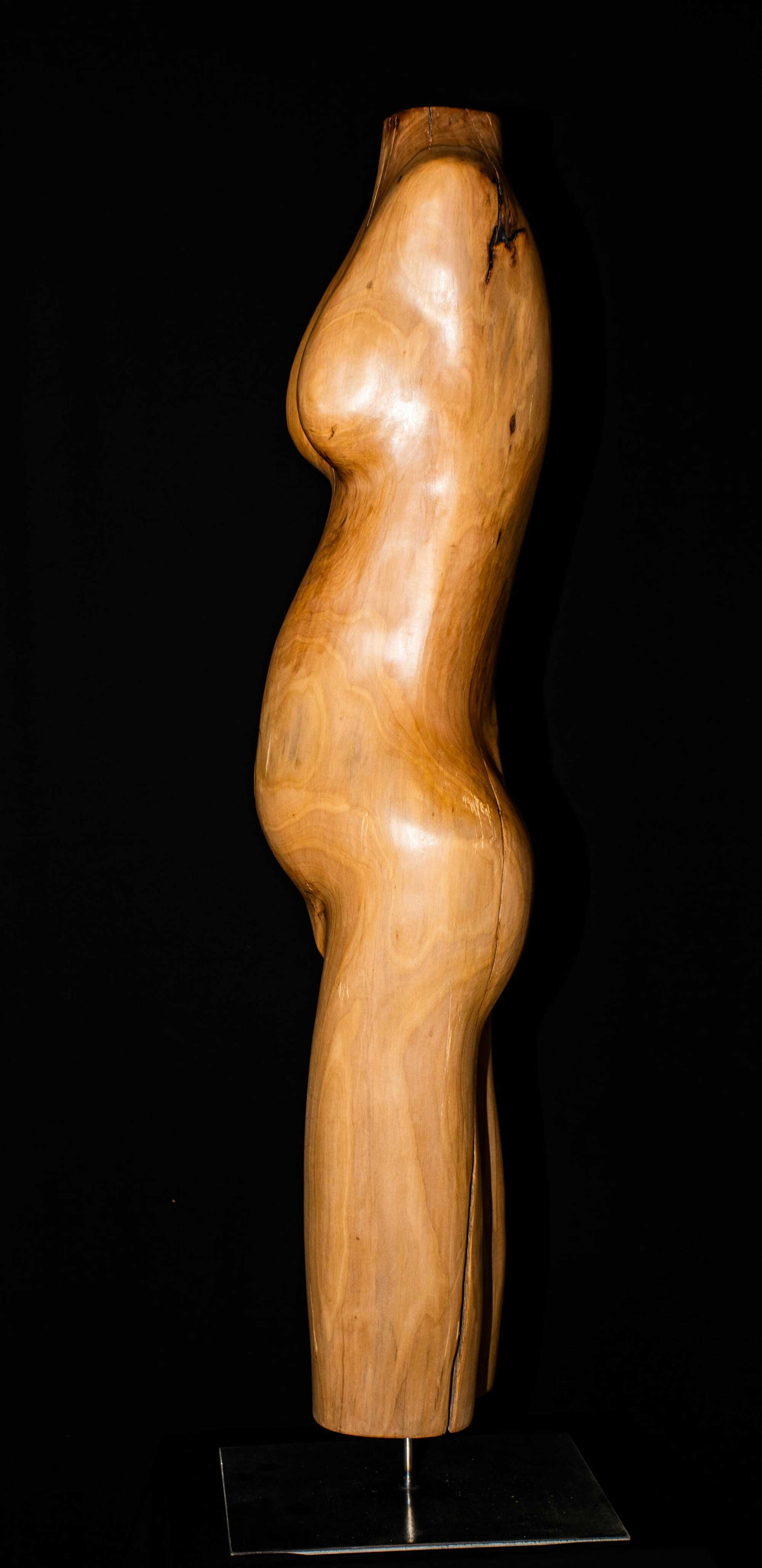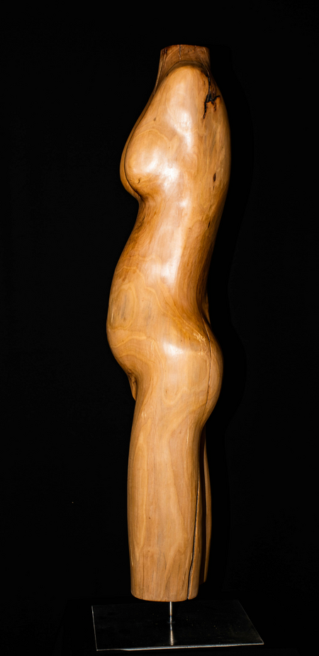 Aus einem Birnenbaum habe ich diese "leicht schwangere " Frau geschaffen. Sie trägt ihr kleines Glück im Bauch und merkt die Veränderung in ihr.