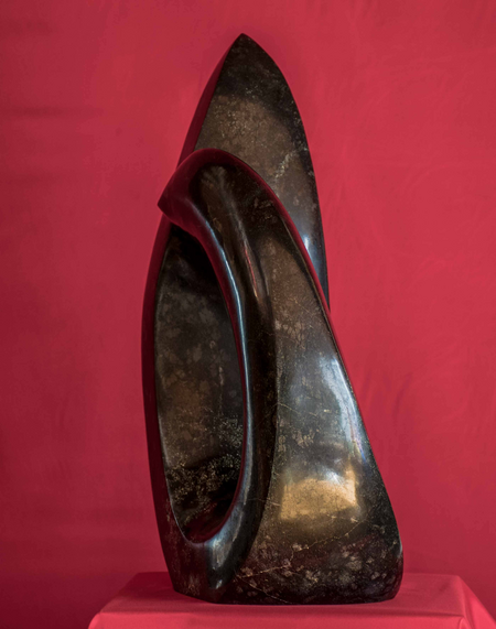Aus einem ca. 70 kg schweren Diabas-Stein wollte ich eine abstrakte Figur - ein Tänzer oder ein Tanzpaar, je nach dem, was man sieht - schaffen. Für mich ist es eine edle, sinnliche Skulptur, die mit dem besonderen Stein sehr anspricht und fesselt.