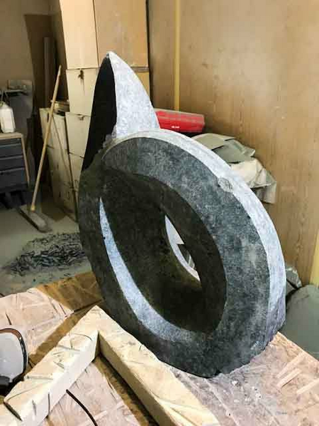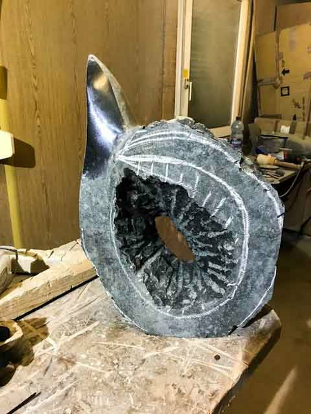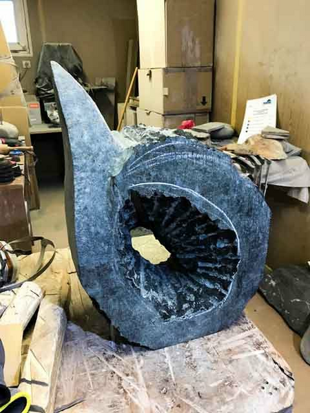 Bei den Bildern sieht man den Verlauf der Arbeit bis zur fertigen Skulptur.