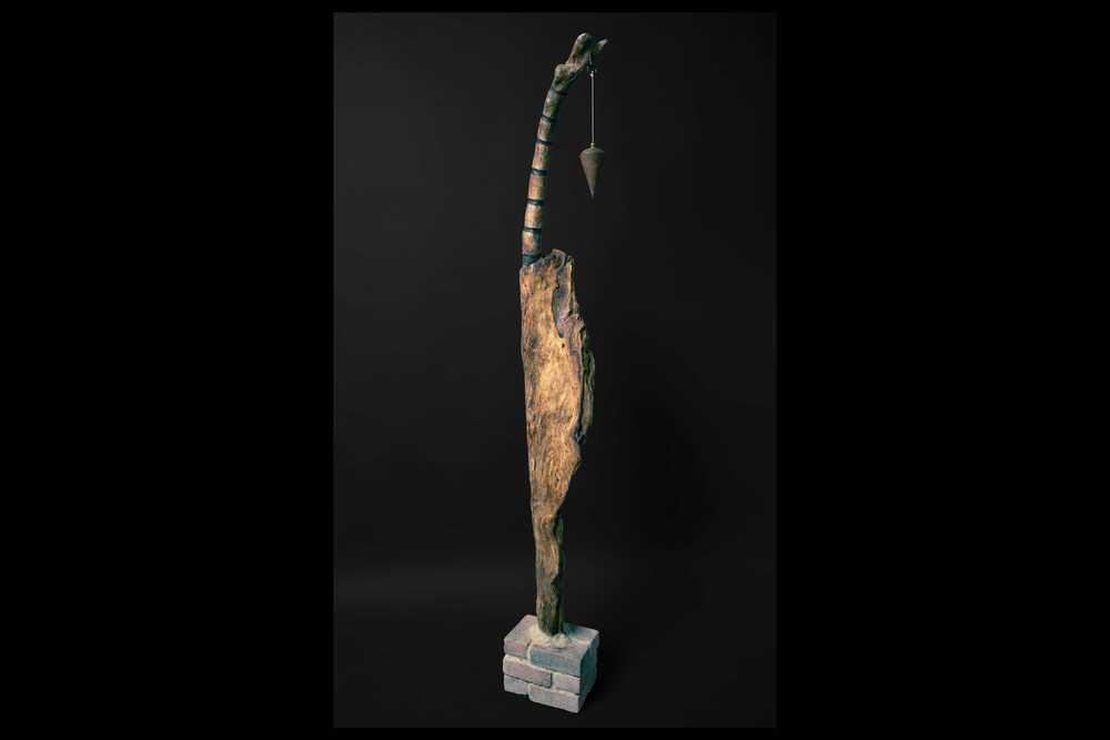 Eine Treibholzmodulation auf Ziegelsteinen mit Senklot