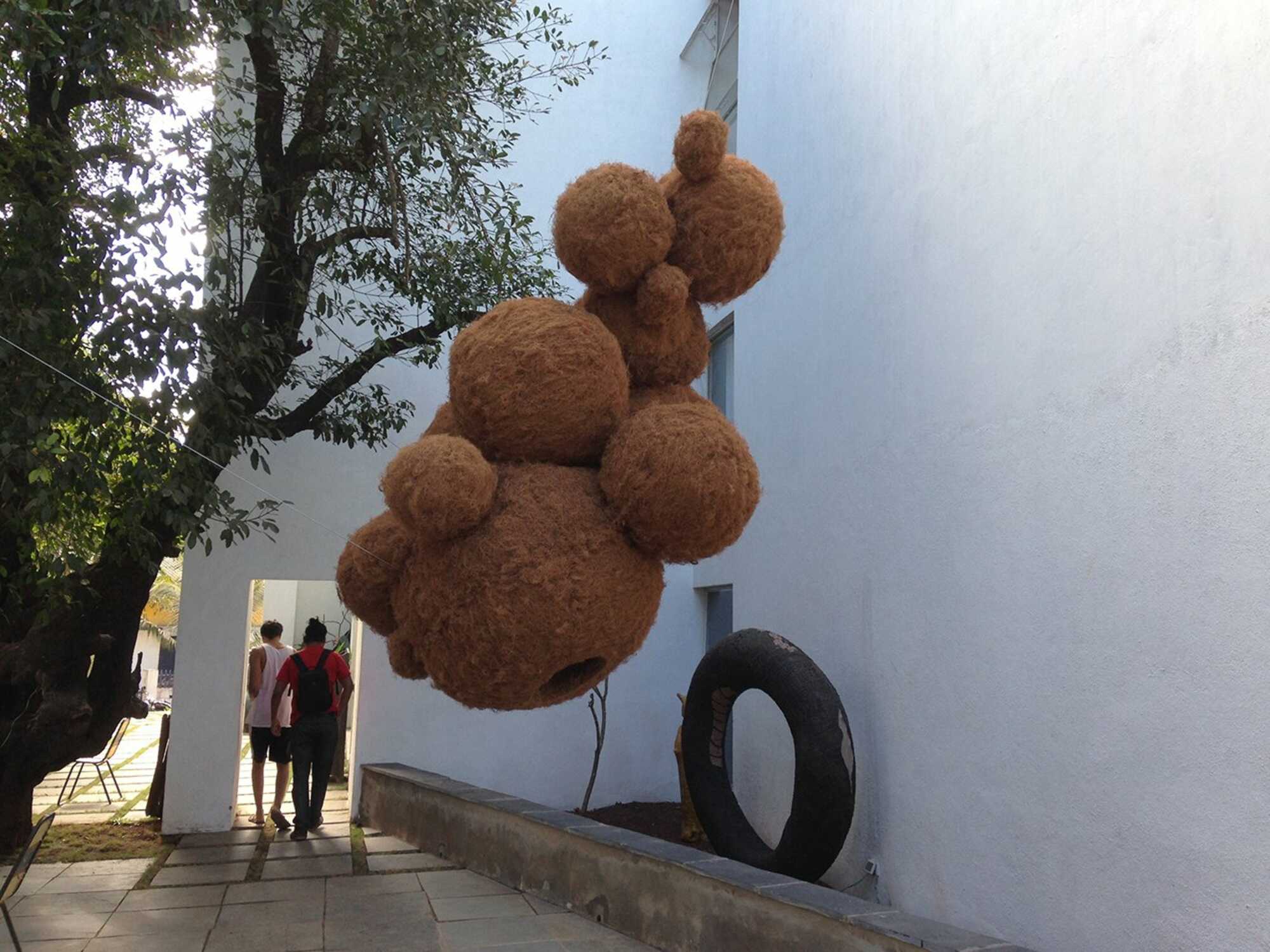 When thinking we are hardly aware of the environment, we are closed in our mindbubble. When you put your head in this coconut fibre sculpture, the world is dark, soft and lonesome.