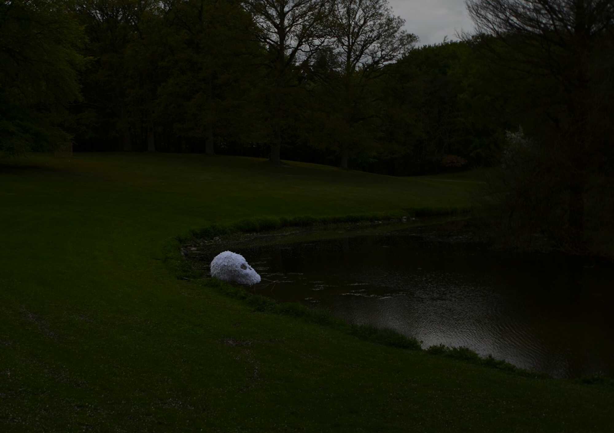 Vanitas objects are an old symbolic in the arts of the inevitability of death and the transience and vanity of earthly achievements and pleasures. This feathered skull is fixed to a transparant boat, ready to cross the waters, may also be seen as a tribute to the beauty of life.