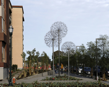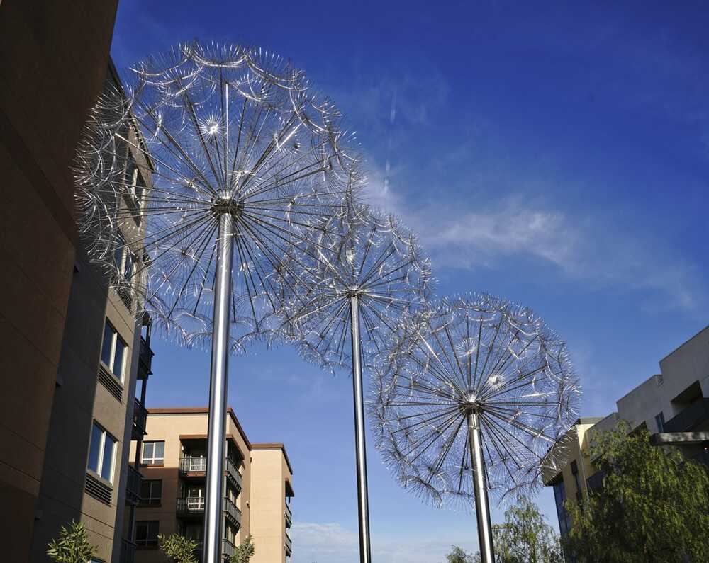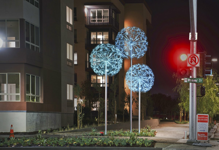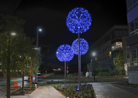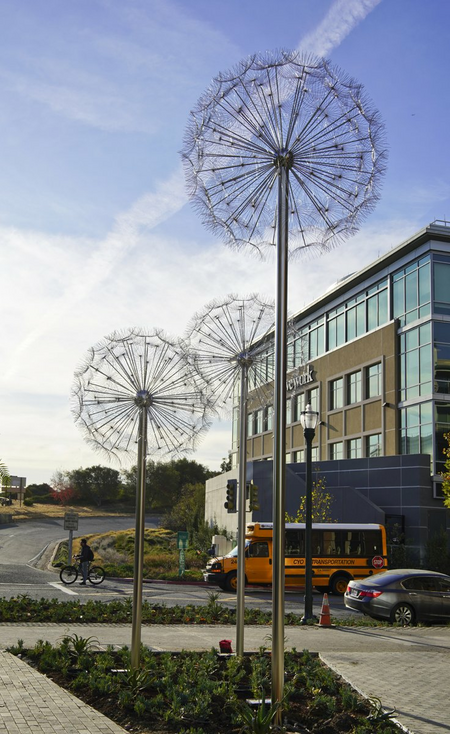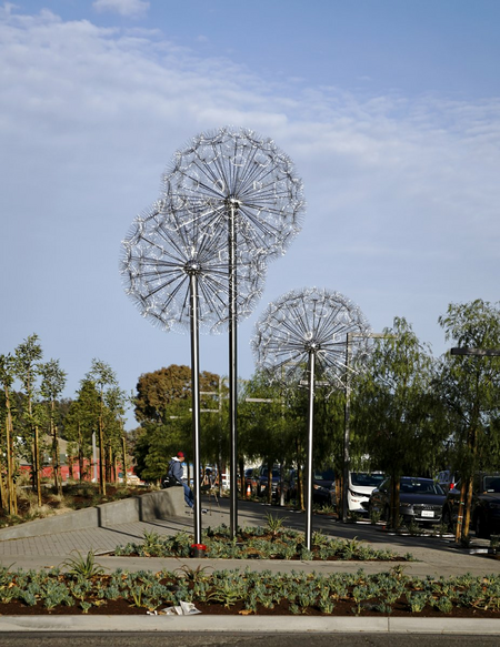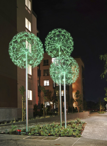 "Dandelions" is an installation directly inspired by the sophisticated design of dandelions (Taraxacum officinale) occurring in nature. The concept of this work was preceded by a meticulous analysis of the structure of dandelion seedhead, which in a somewhat simplified form was then transposed to the macro scale. As a result, the delicate floral pattern took on a completely new — half futuristic, half fairy tale — context.
