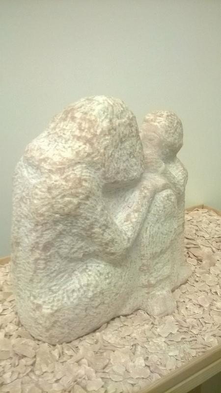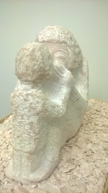 Eine Mutter mit zwei Kindern wartet. Wartet auf Asyl. Wartet auf Hilfe. Wartet auf einen netten Menschen. Sie tröstet und beruhigt ihre Kinder.