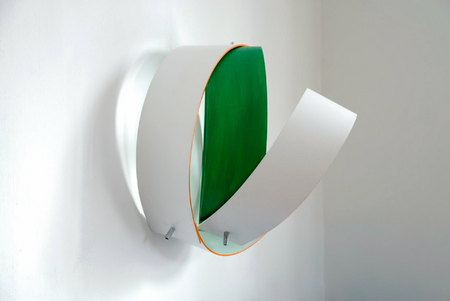 Die Objekte haben kein Oben und kein Unten und können beliebig herum gehängt werden, wodurch der Eindruck entsteht, als hinge immer wieder ein neues Objekt (Gesamtform) an der Wand, obwohl die Struktur immer die gleiche ist.