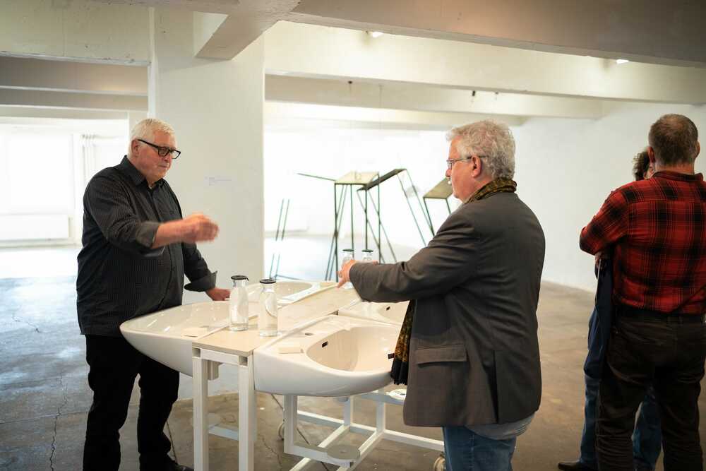 Mobile Unschulds-Waschanlage für ein bis vier Personen, Stahl, Keramik, Glas, Seife, Wasser