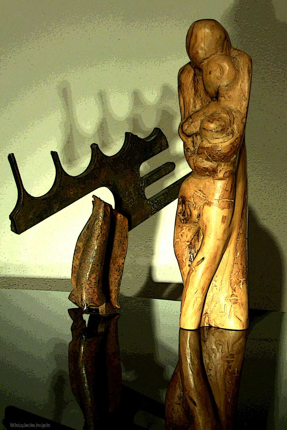 "Uomo e Donna - Ferro e Legno". Gegensatzpaare. Olivenholz und Eisenskulptur