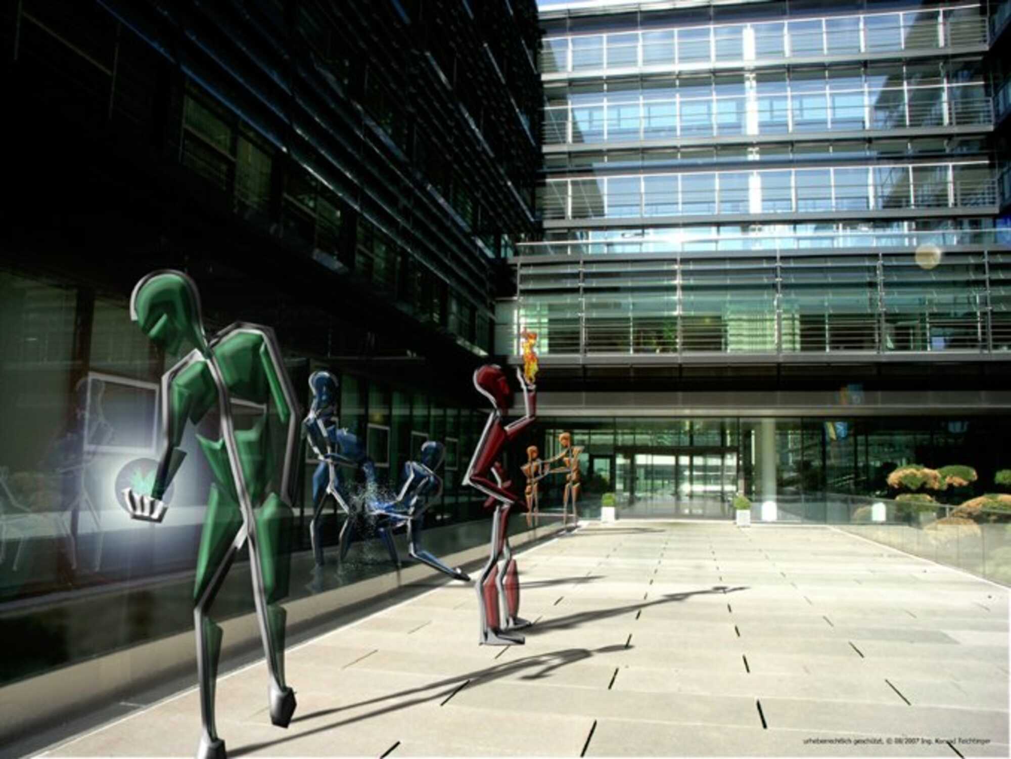 Vorplatzgestaltung mit sechs Stahl-Glas Skulpturen