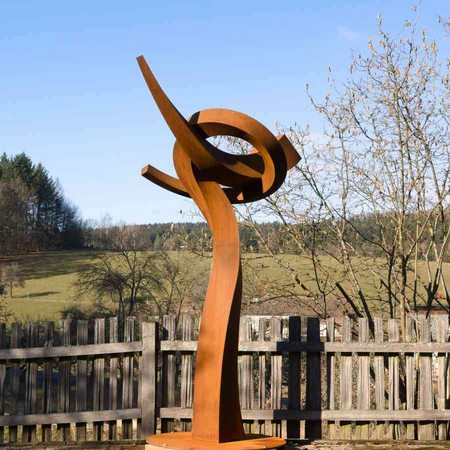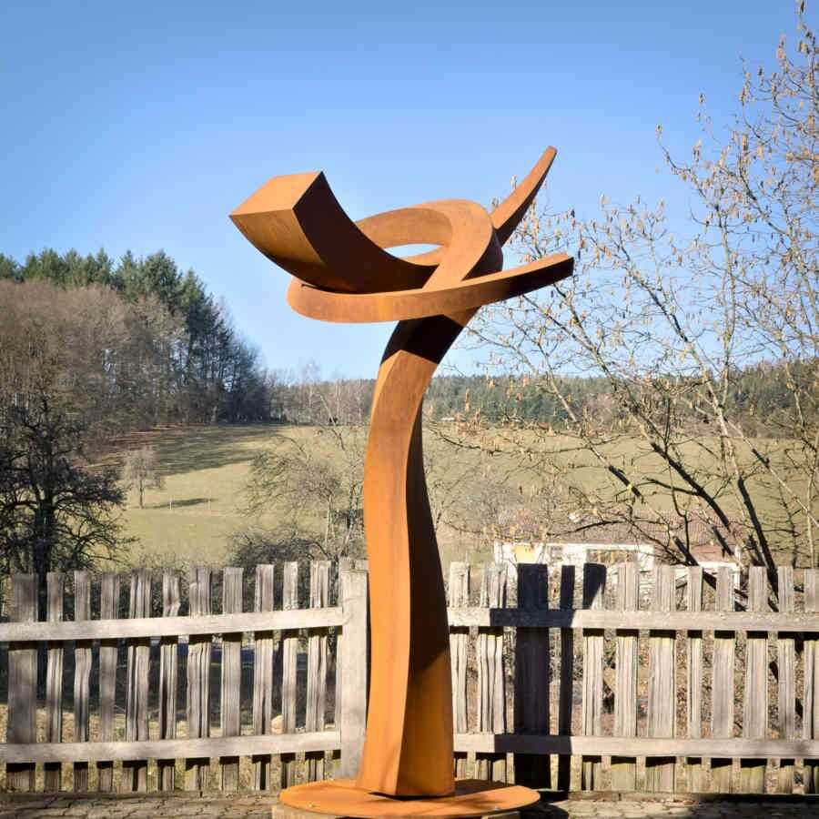 Material: Corten-Stahl, verschweißt und verschliffen.