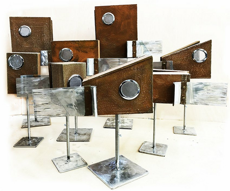 Wood, Bronze, Metal, Mixed Media, Glass, Installation, Sound, Steel, 3D-Printing, Plaster