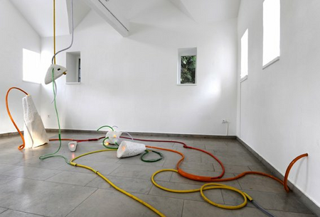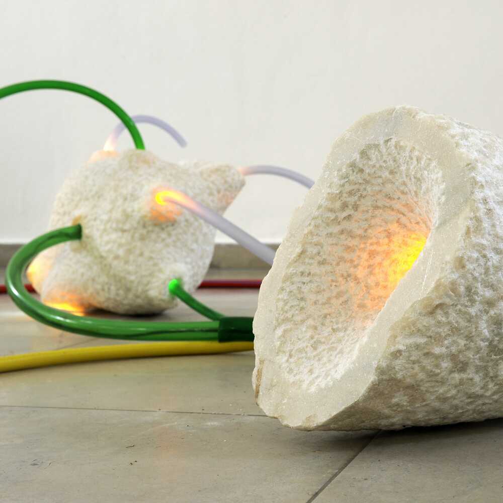 Interaktive Installation mit Marmor, LED-Lampen, Bewegungssensoren, Plastikschläuchen, Arduino-Steuerung