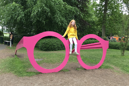 The interaction showed bursts of play, joy, looking through the frame, cleaning our lenses, climbing a larger than life understood object, being a central core for family value and inspiration, and a common ground for friendship. A frame allows us to ponder how we see things around us. Eye glasses are about focus things inside the frame are sharp like a landscape filled with colorful tulips, or a historical royal palace.