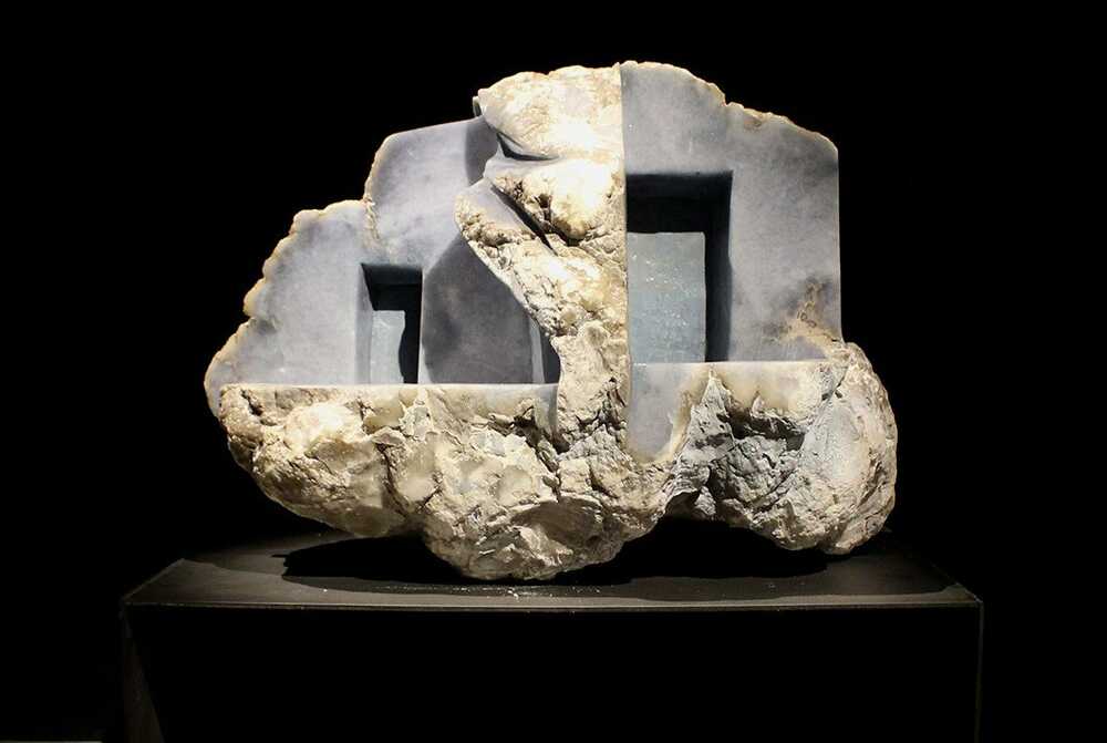 Obra en alabastro azul. Desde la roca viva, se abren las entradas. Perteneciente al proyecto "Stone Waterfall"