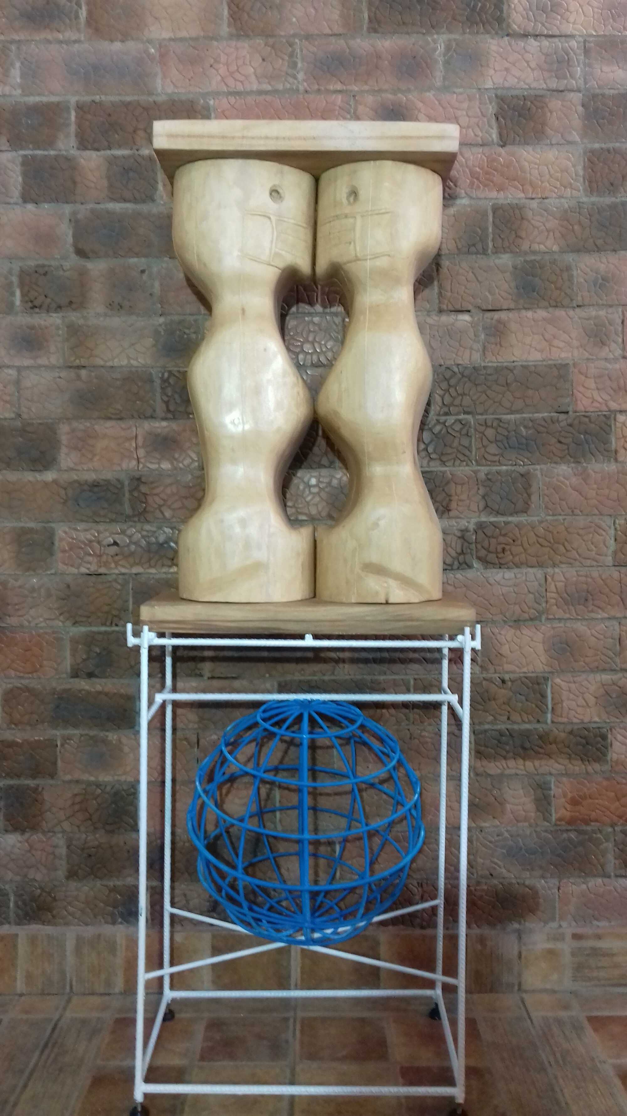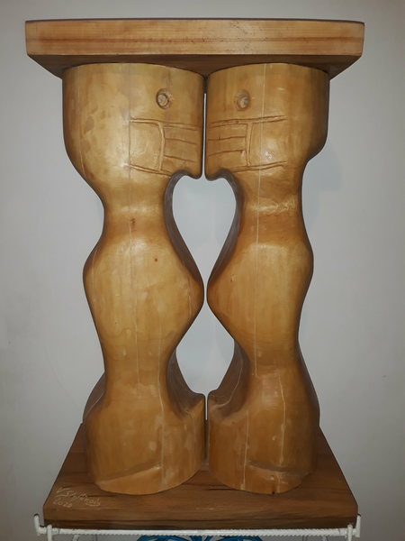 The gaps between the two bodies, below the chin and above the knees, form two hearts with the tips together, emptied of feelings, forming an hourglass through which time flows, waiting for better times. So I sculpted the air.