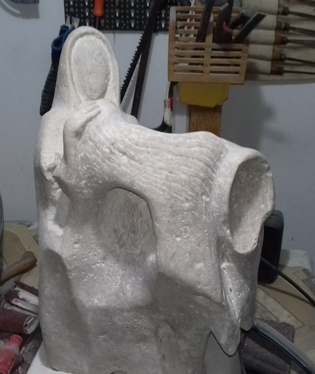 On the right side of the image of my sculpture is the negative trace of her husband's head.. Always gone hunting, work or elsewhere.